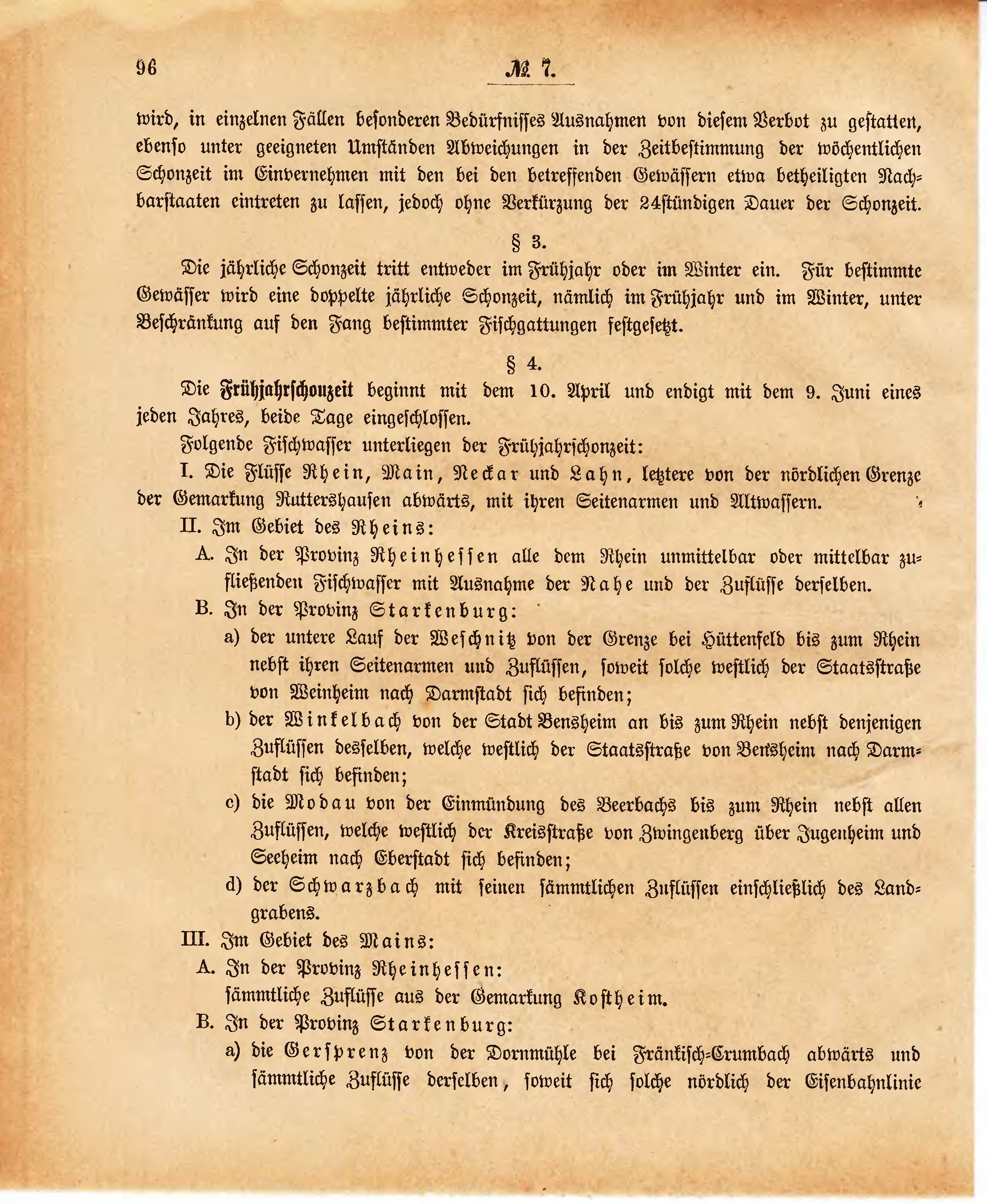 I. Die Flüsse Rhein, Main, Neckar und Lahn, letztere von der nördlichen Grenze der Gemarkung Ruttershausen abwärts, mit ihren Seitenarmen und Altwassern.