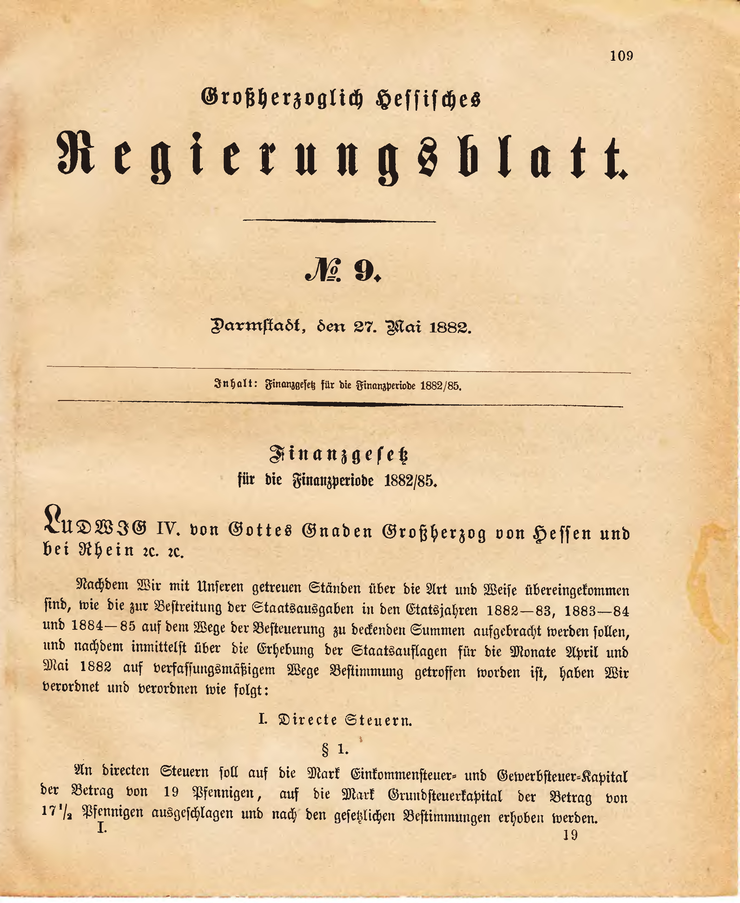 | Großherzogtum Hessen/Regierungsblatt 1882 | |