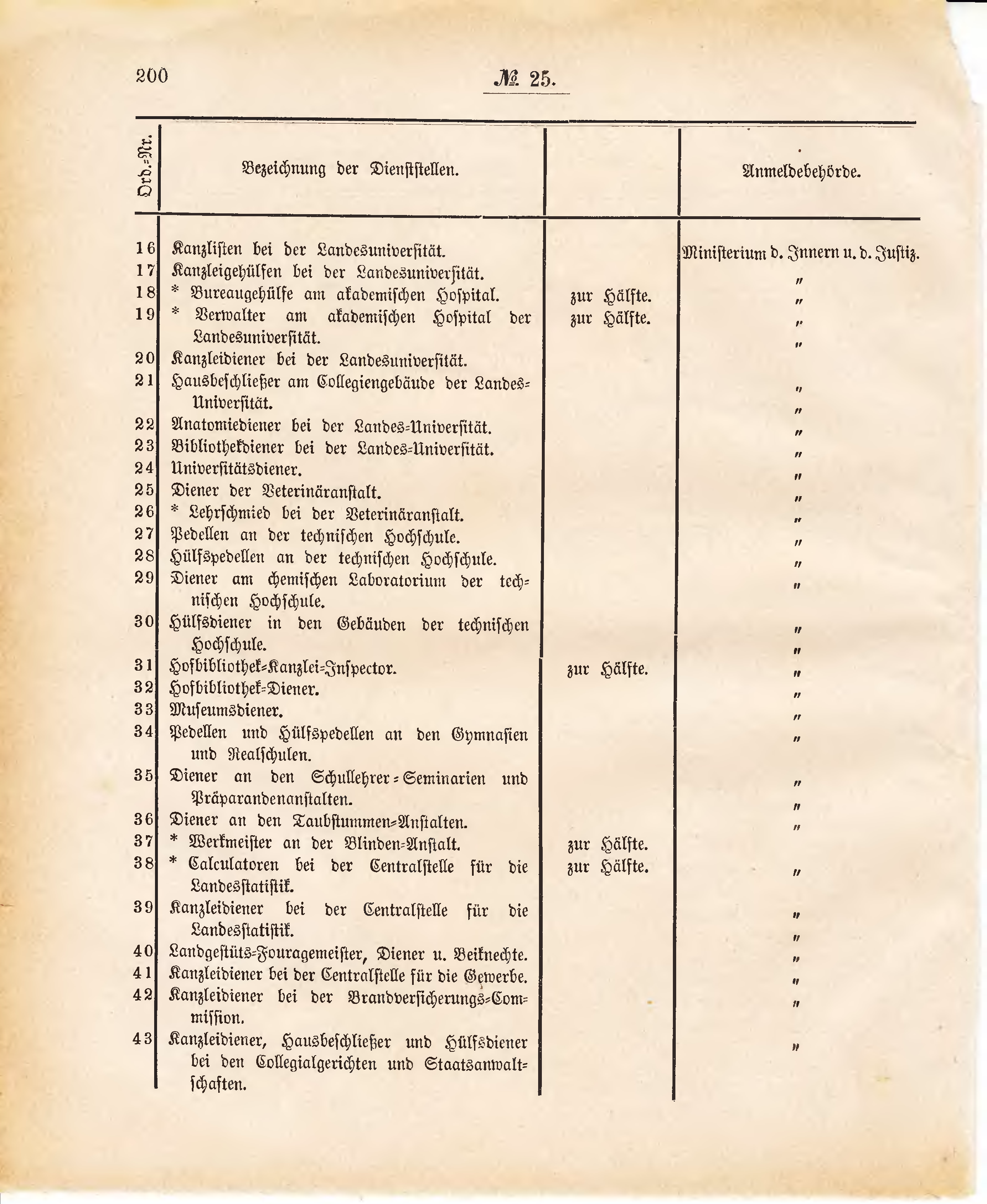 | 43 | Kanzleidiener, Hausbeschließer und Hülfsdiener bei den Collegialgerichten und Staatöanwalt- schaften. |