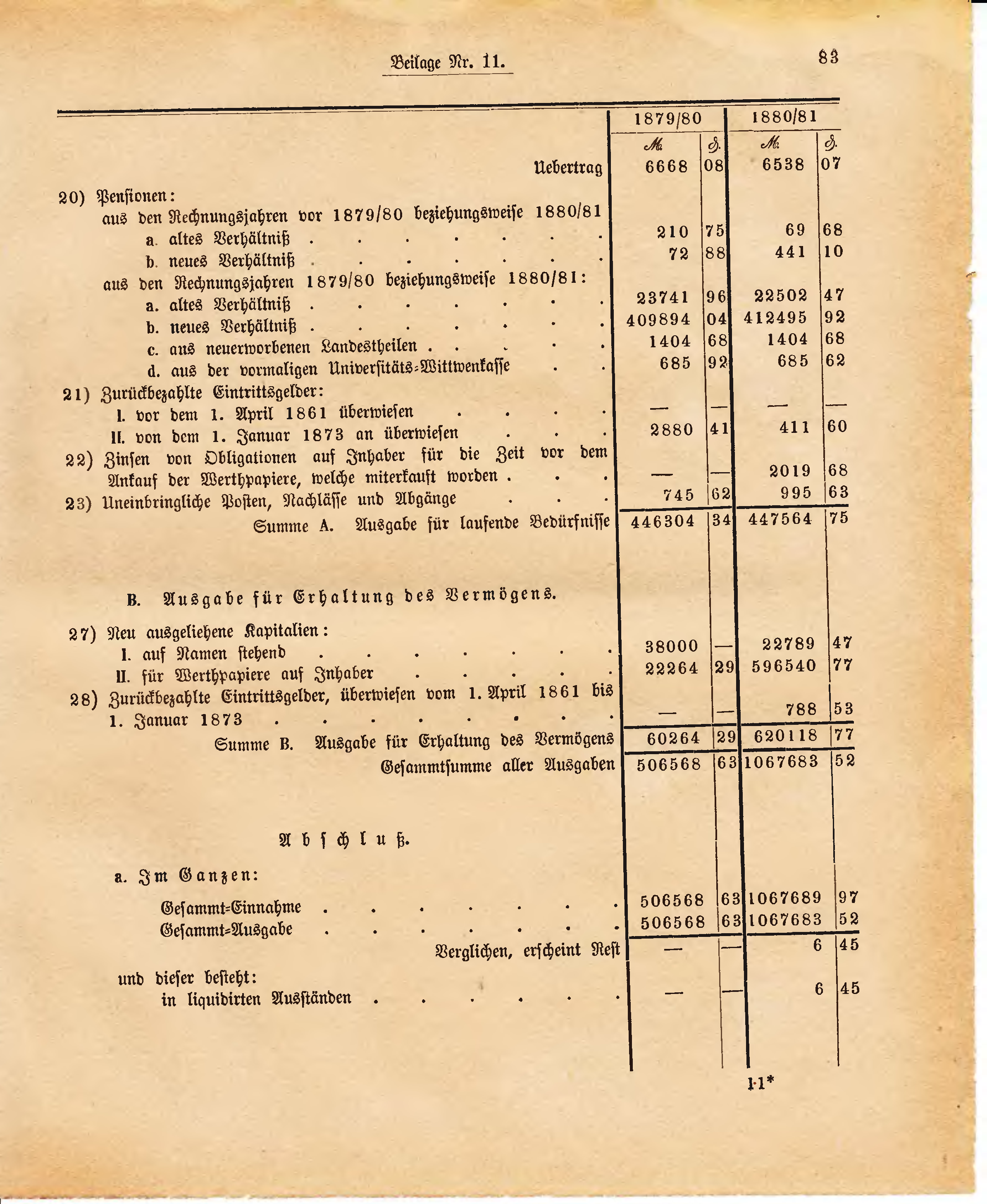 aus den Rechnungsjahren vor 1879/80 beziehungsweise 1880/81