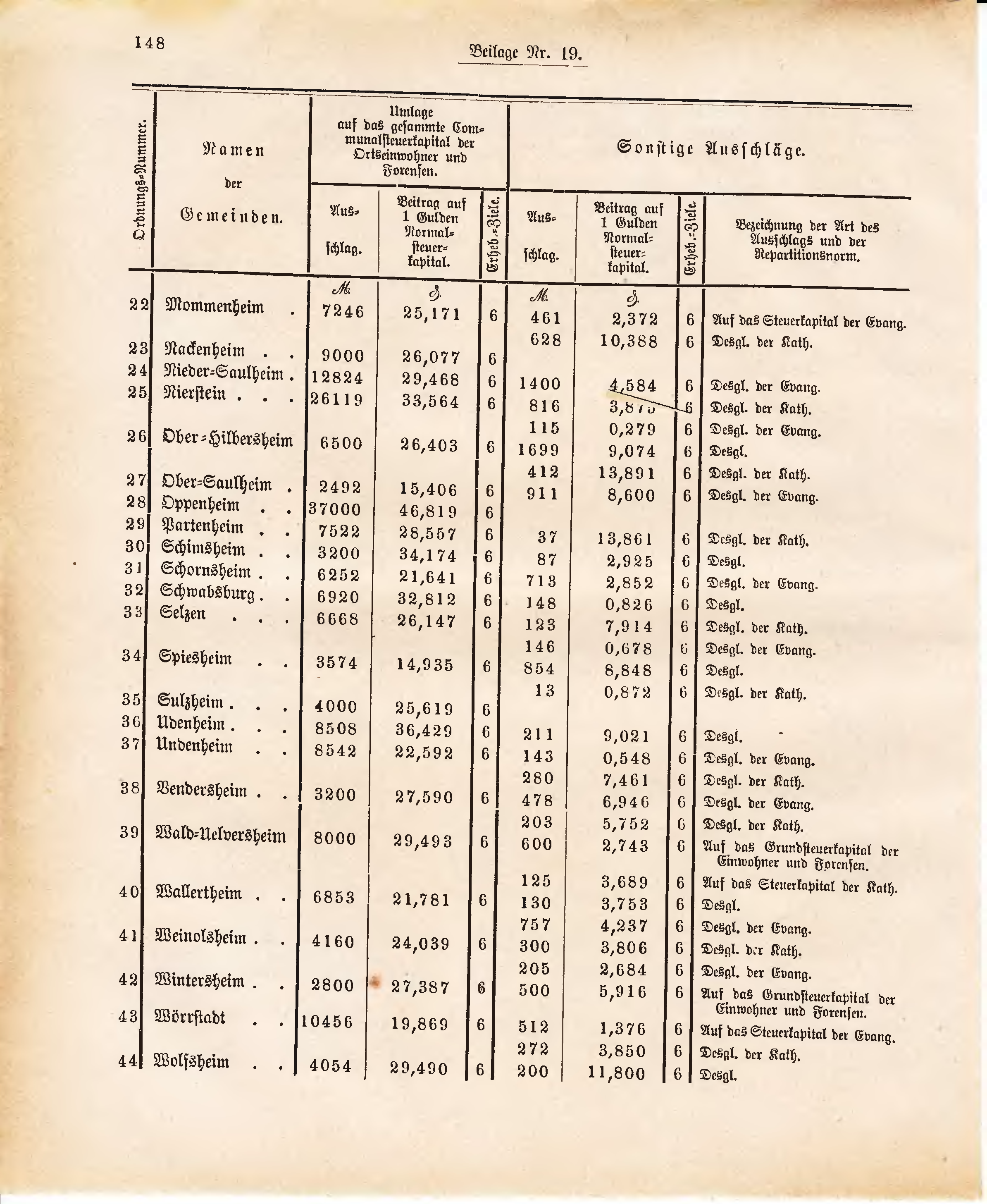 | 42 | Wintersheim | 2800 | 27,387 | 6 | 500 | 5,916 | 6 | Auf das Grundsteuerkapital der Einwohner und Forensen. |