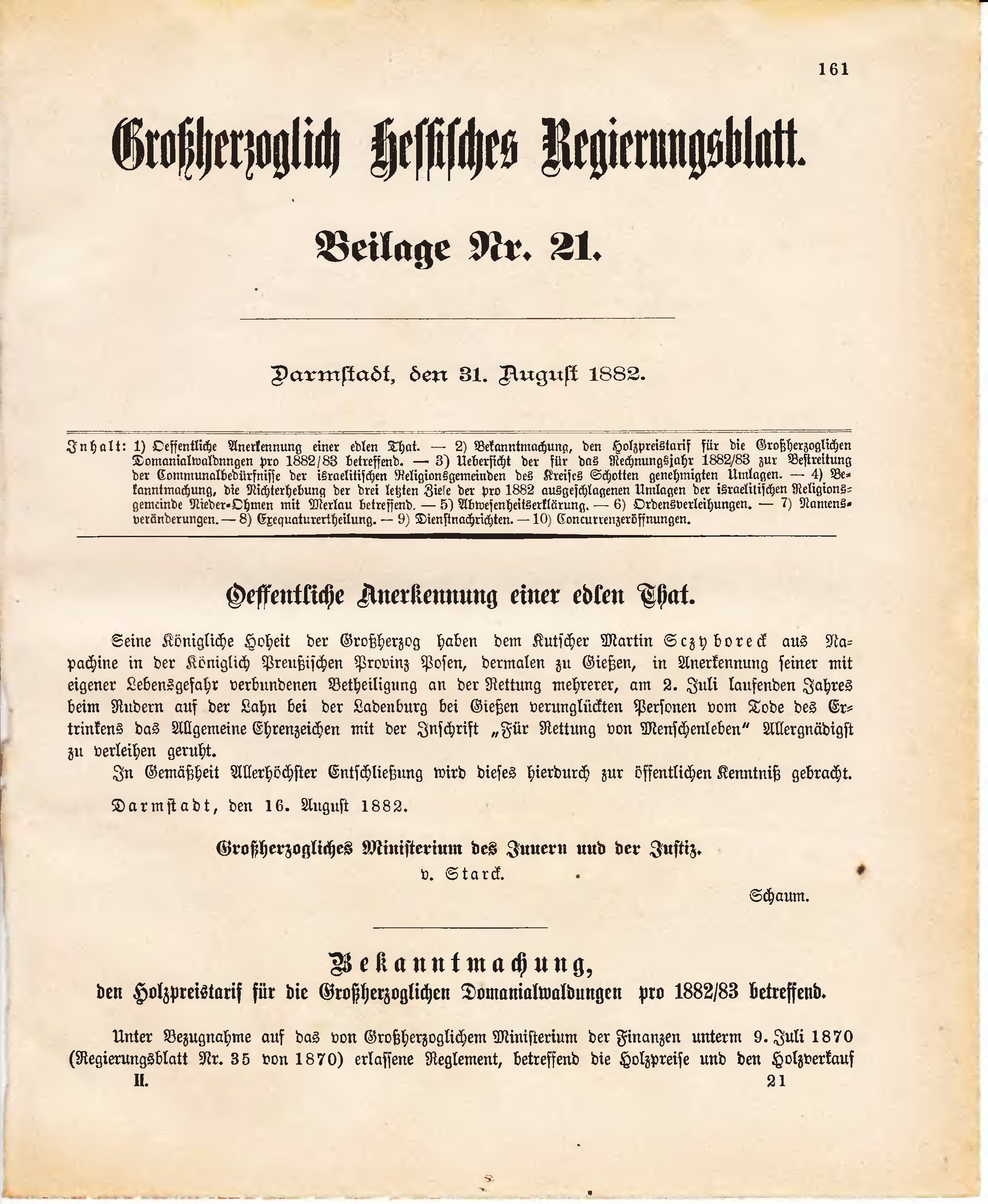 | Großherzogtum Hessen/Regierungsblatt 1882 | |