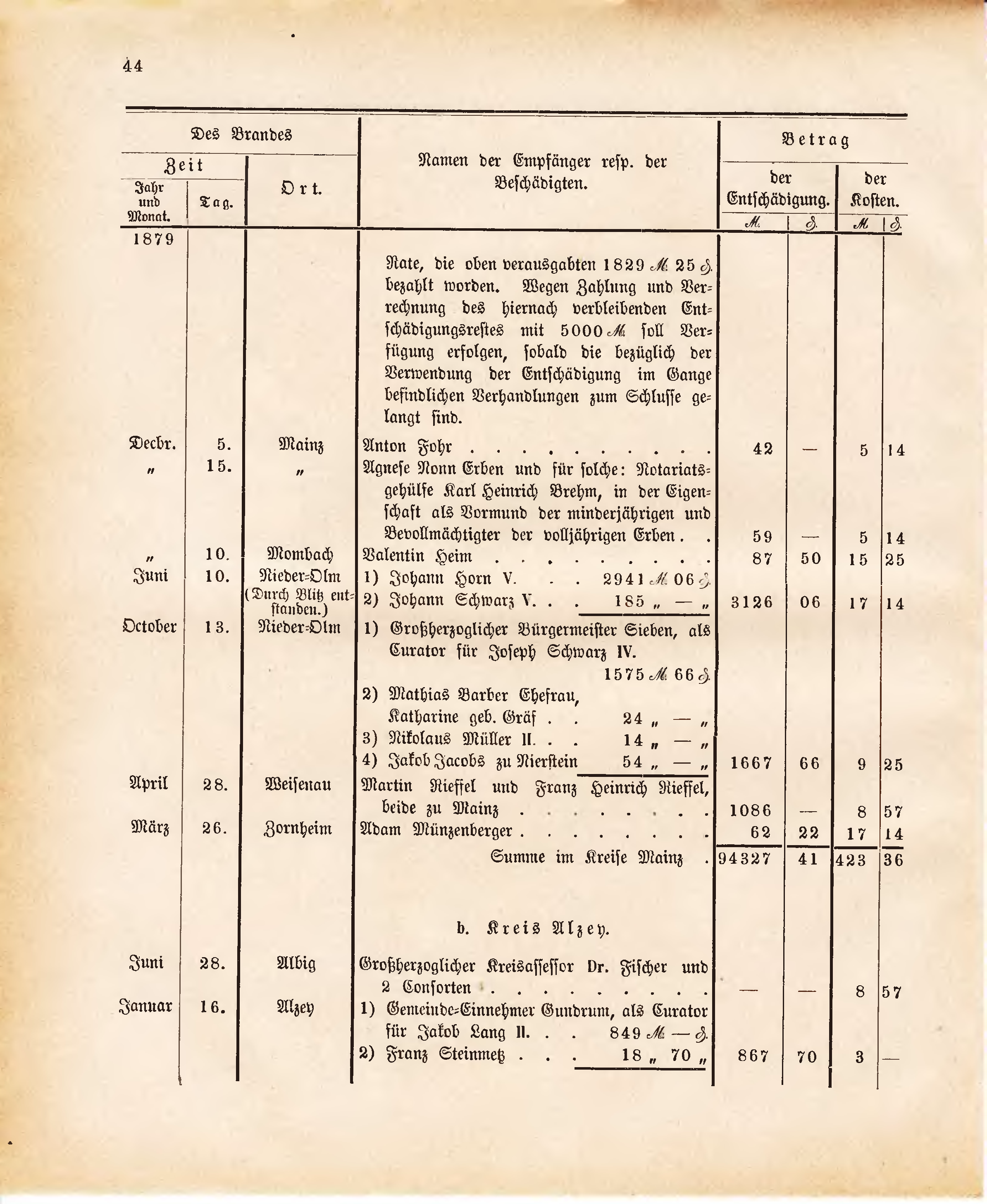 Rate, die oben verausgabten 1 829 25 bezahlt worden. Wegen Zahlung und Verrechnung des Hiernach verbleibenden Entschädigungsrestes mit 5 000 soll Verfügung erfolgen, sobald die bezüglich der Verwendung der Entschädigung im Gange befindlichen Verhandlungen zum Schlusse gelangt sind. |