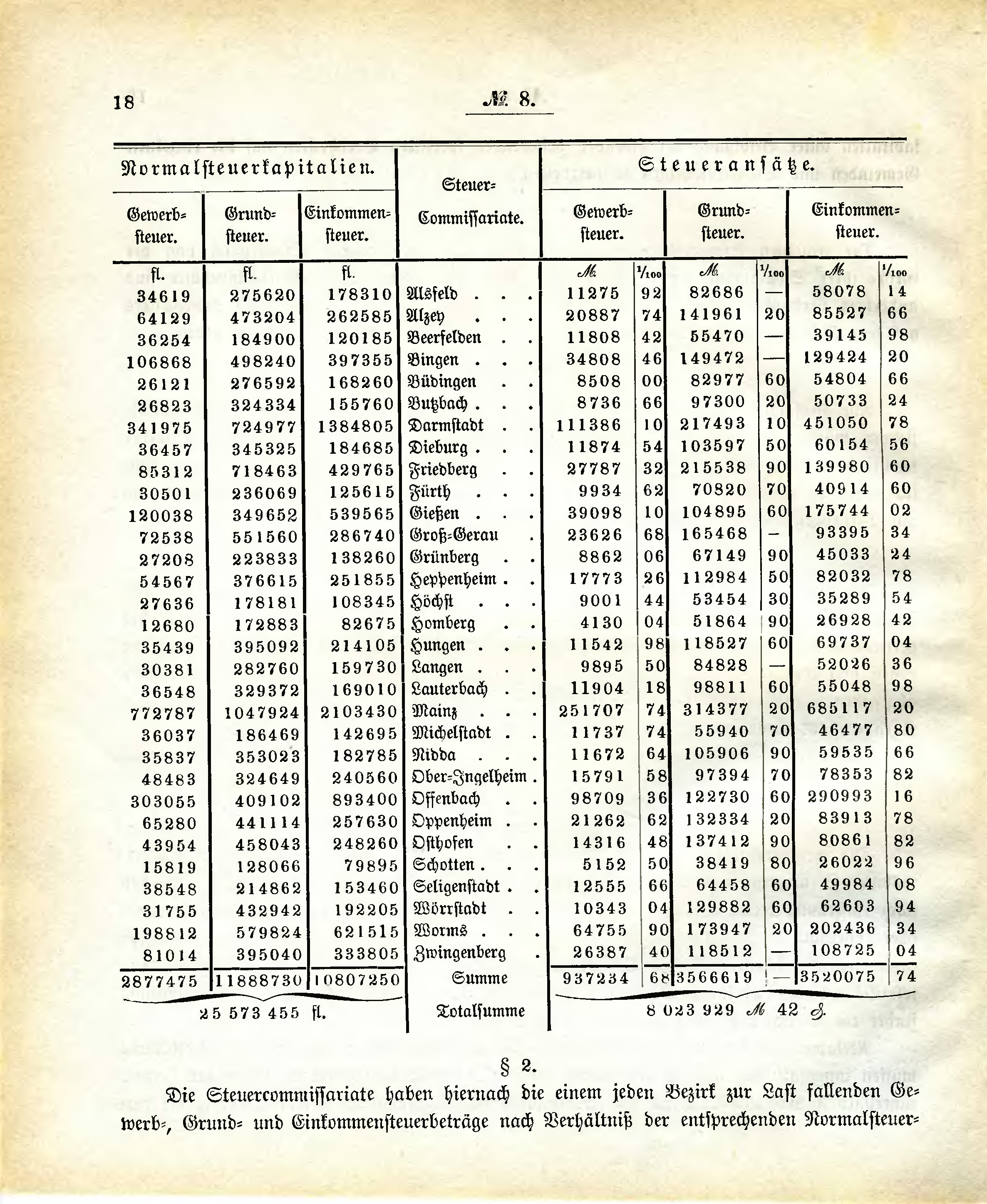 Die Steuercommissariate haben hiernach die einem jeden Bezirk zur Last fallenden Gewerb-, Grund- und Einkommensteuerbeträge nach Verhältniß der entsprechenden Normalsteuerkapitalien