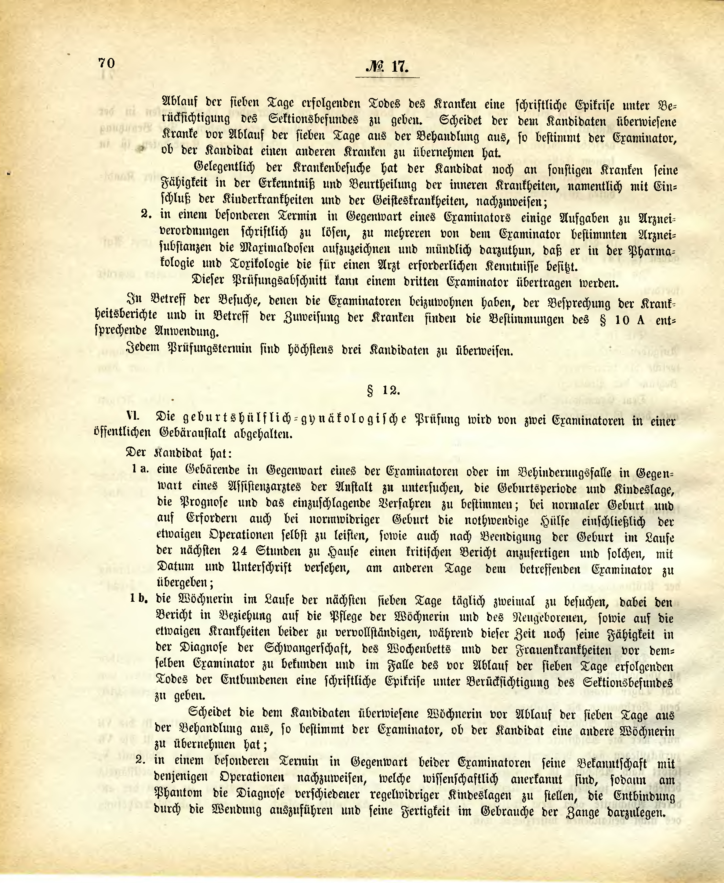 VI. Die geburtshülflich-gynäkologische Prüfung wird von zwei Examinatoren in einer öffentlichen Gebäranstalt abgehalten.