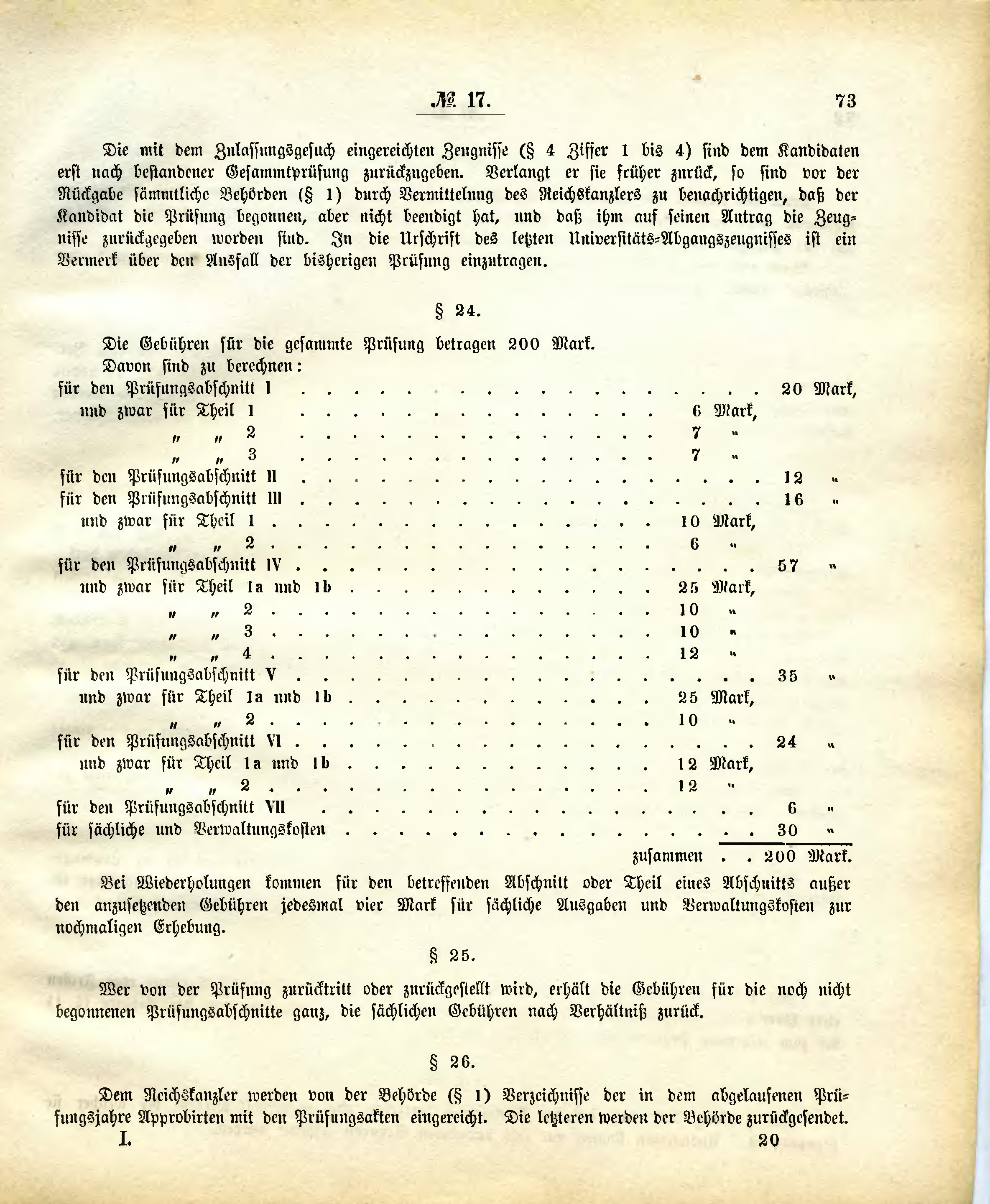 Die Gebühren für die gesammte Prüfung betragen 200 Mark.