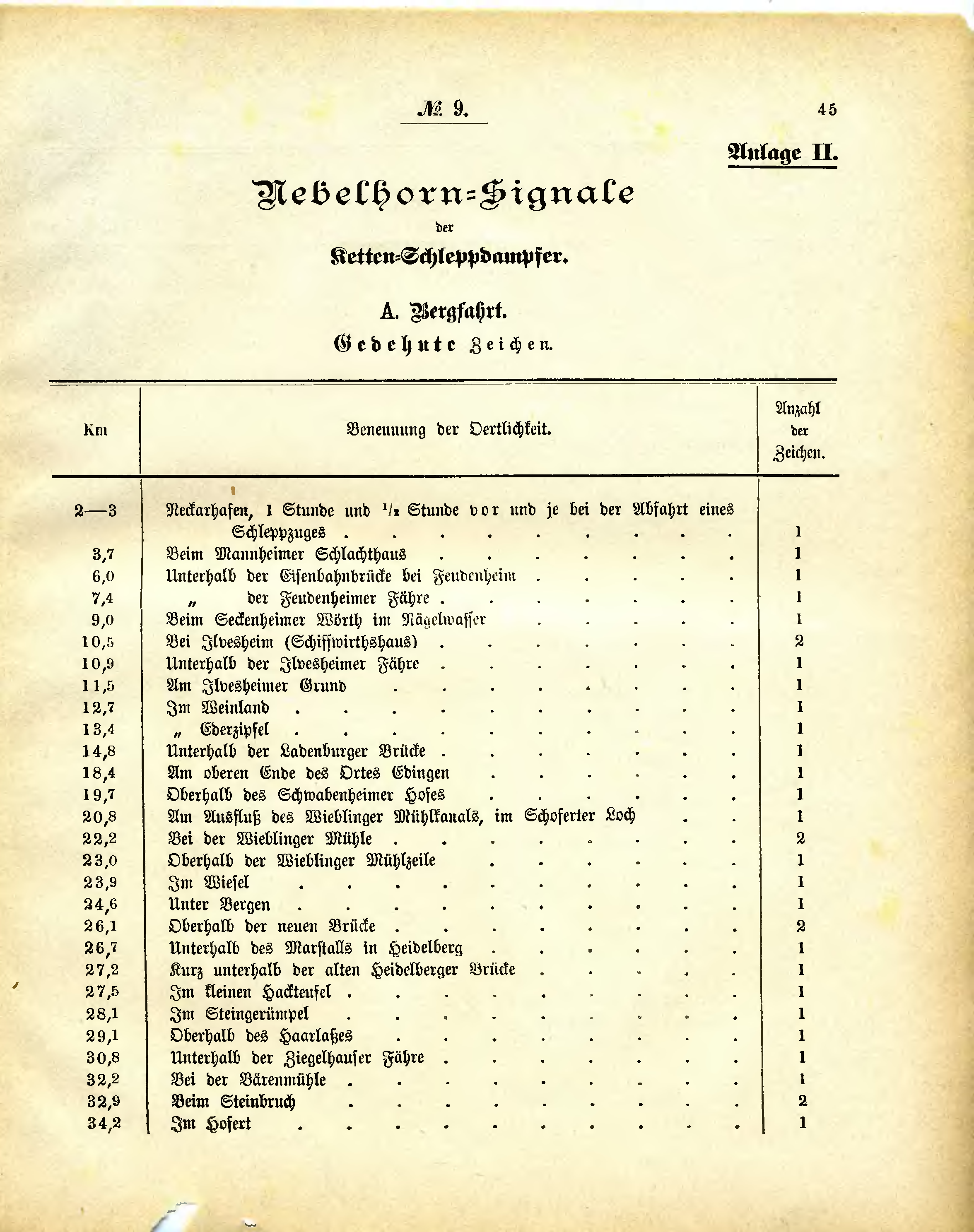 | 2-3 | Neckarhafen, 1 Stunde und 1/2 Stunde vor und je bei der Abfahrt eines Schleppzuges | 1 |