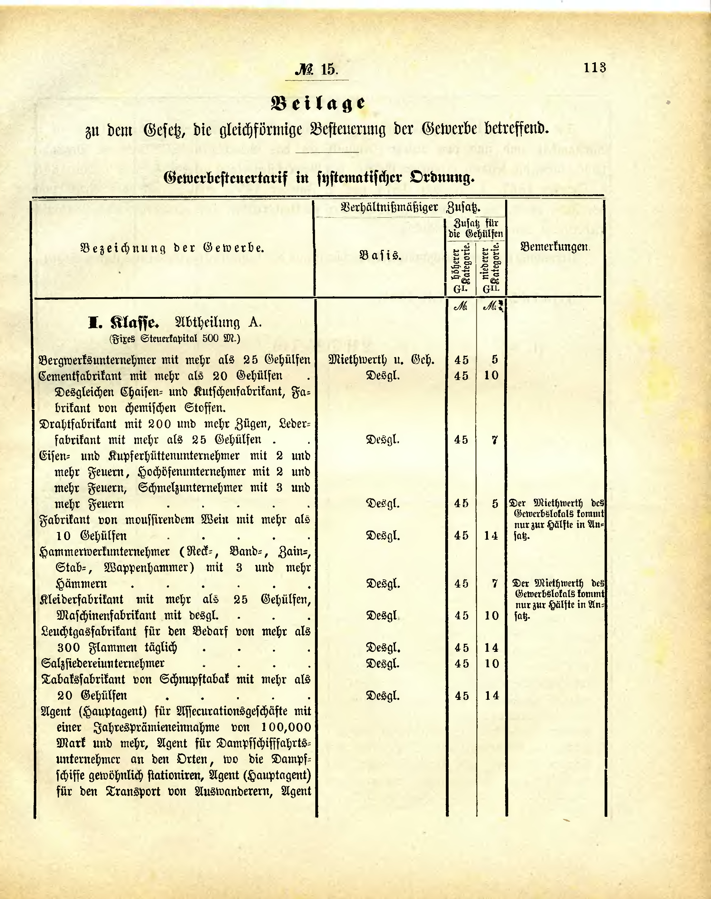 zu dem Gesetz, die gleichförmige Besteuerung der Gewerbe betreffend.