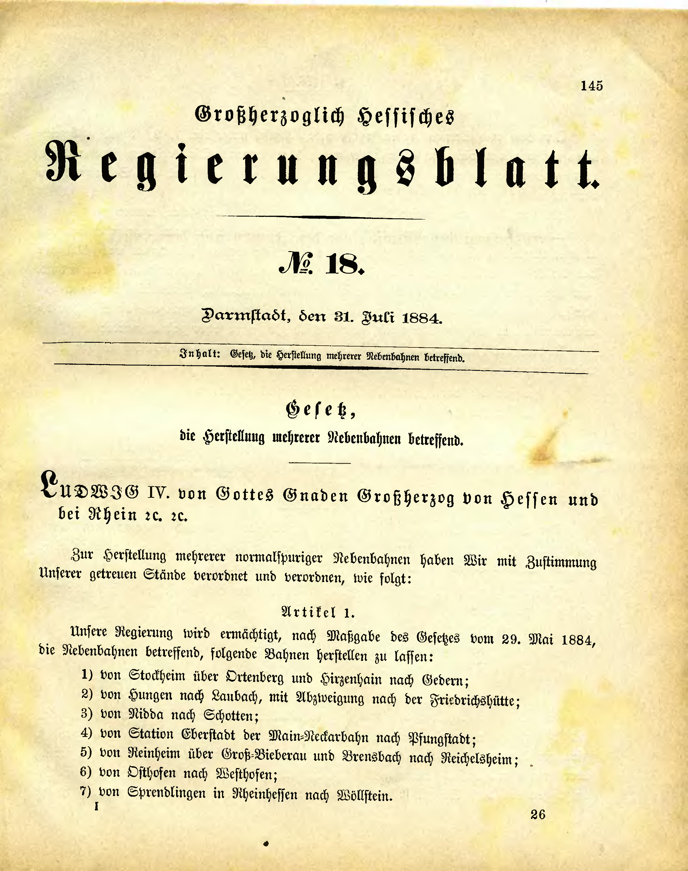 Großherzogtum Hessen/Regierungsblatt 1884/145