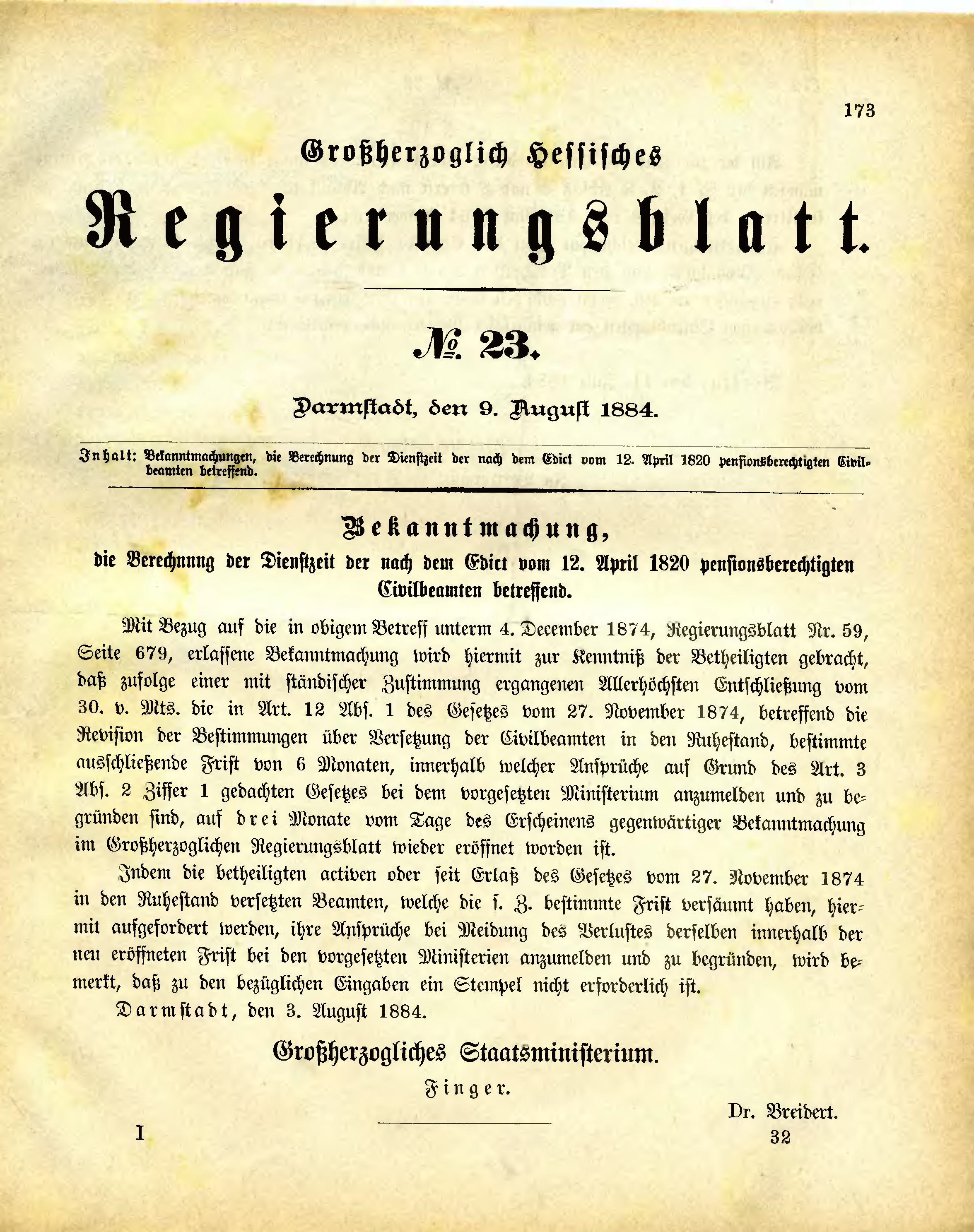 Großherzogtum Hessen/Regierungsblatt 1884/173