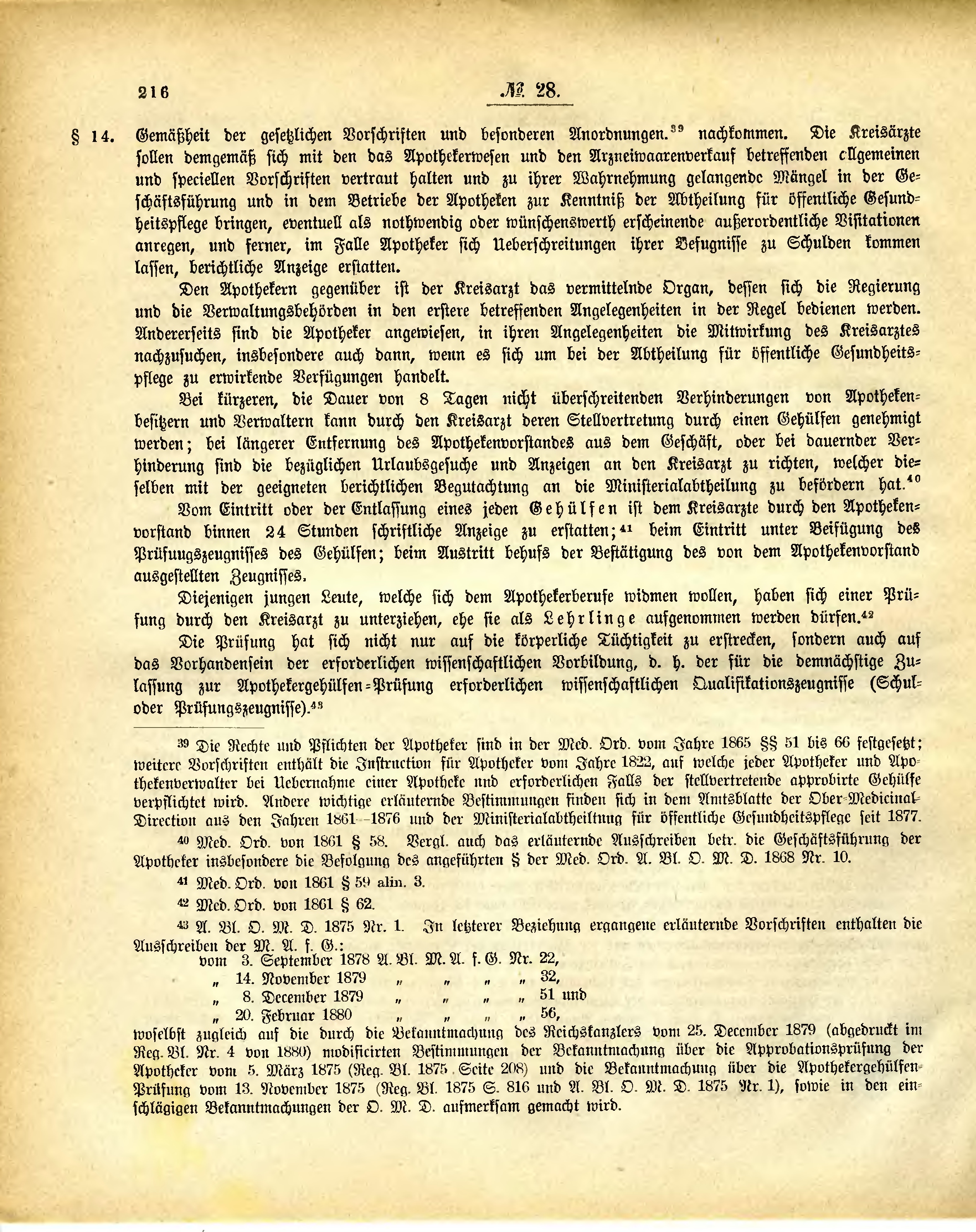 40 Med. Ord. von 1861 § 58. Vergl. auch das erläuternde Ausschreiben betr. die Geschäftsführung der Apotheker insbesondere die Befolgung des angeführten § der Med. Ord. A. Bl. O. M. D. 1868 Nr. 10.