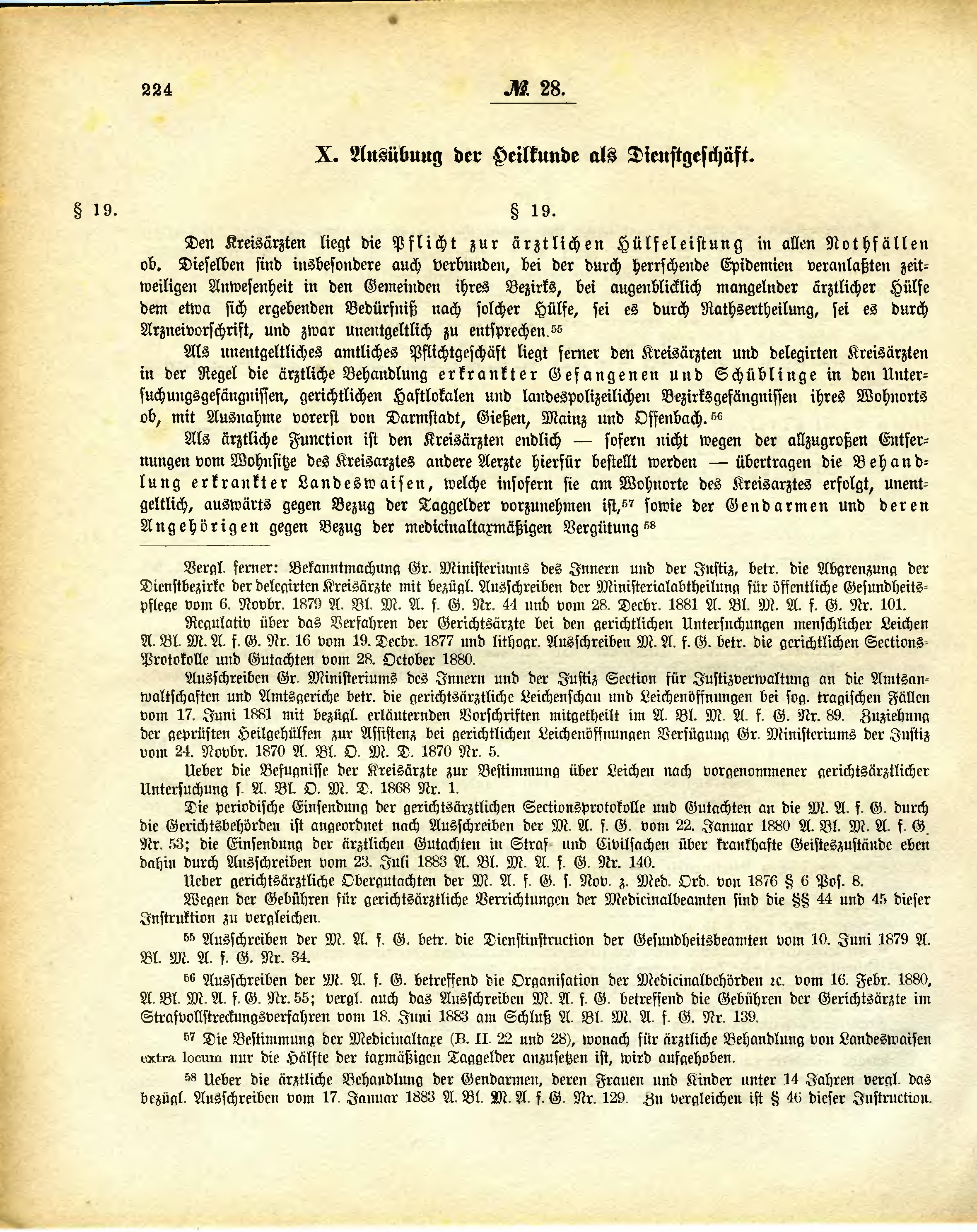Ausschreiben der M. A. f. G. betreffend die Organisation der Medicinalbehörden etc. vom 16. Febr. 1880, A.Bl. M. A. f. G. Nr. 55; vergl. auch das Ausschreiben M. A. f. G. betreffend die Gebühren der Gerichtsärzte im Strafvollstreckungsverfahren vom 18. Juni 1883 am Schluß A. Bl. M. A. f. G. Nr. 139.