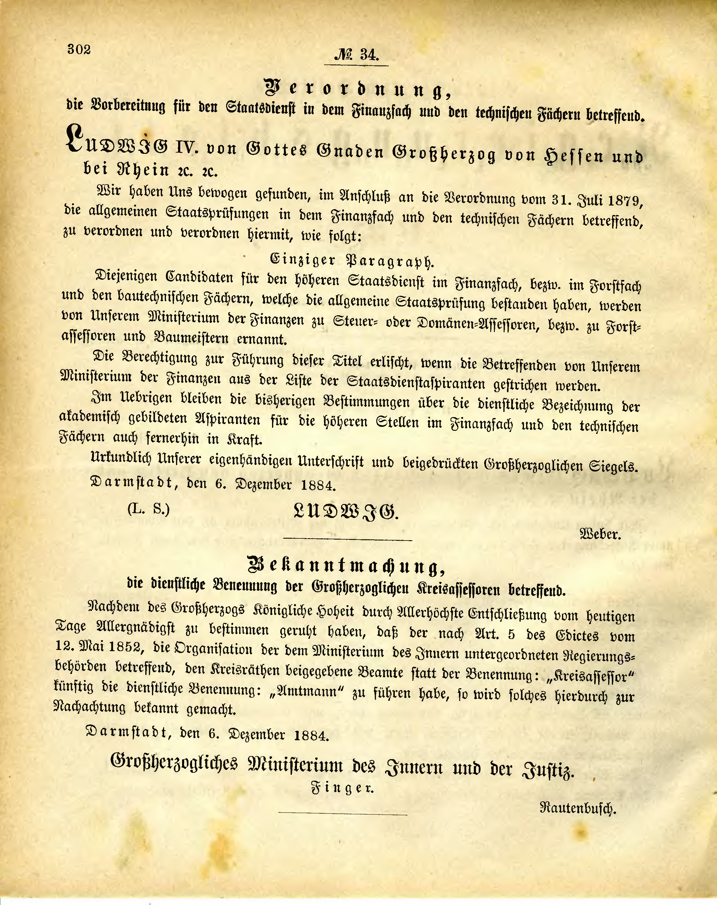 Großherzogtum Hessen/Regierungsblatt 1884/302