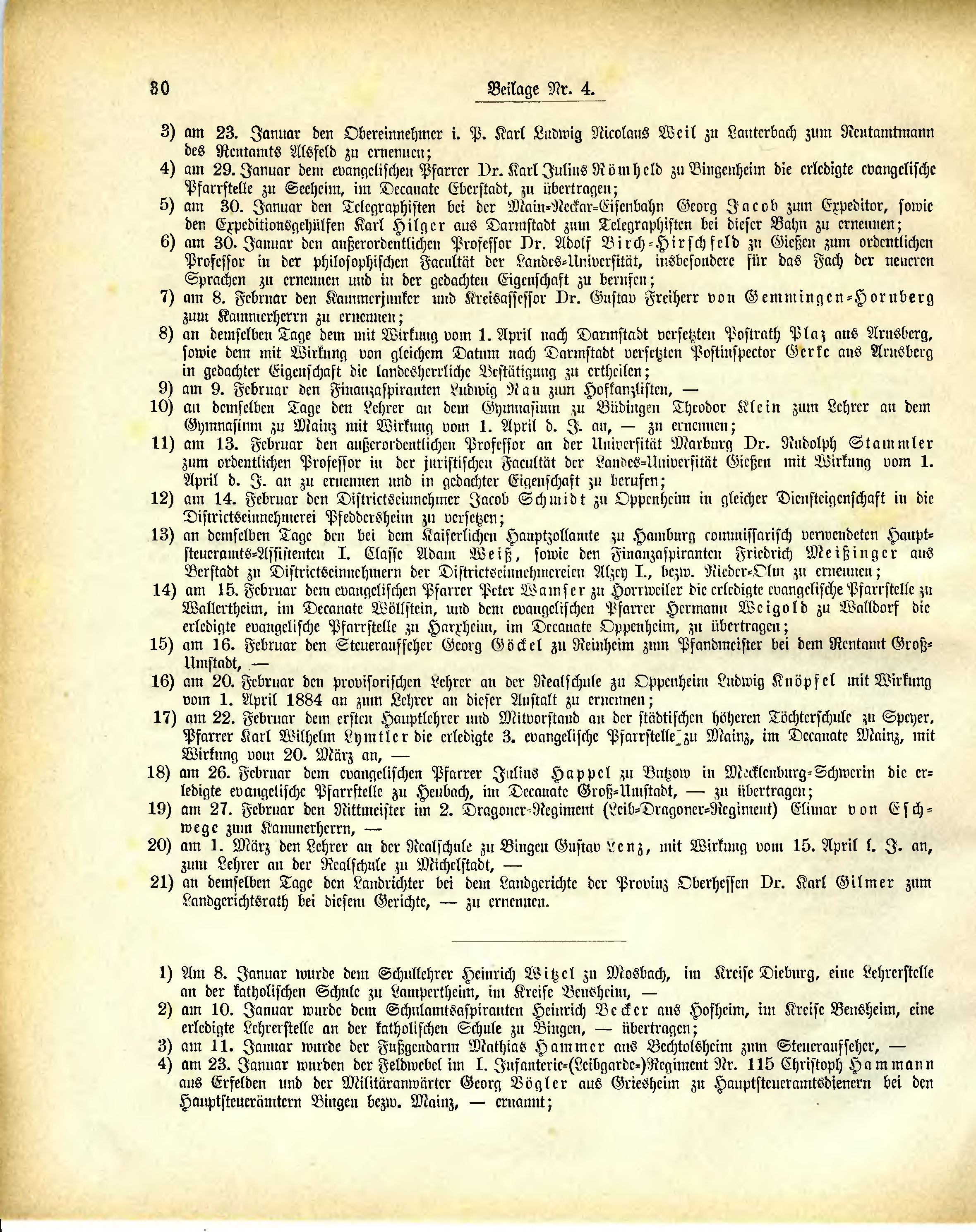 | 21) | an demselben Tage den Landrichter bei dem Landgerichte der Provinz Oberhessen Dr. Karl Gilmer zum Landgerichtsrath bei diesem Gerichte, - zu ernennen. |