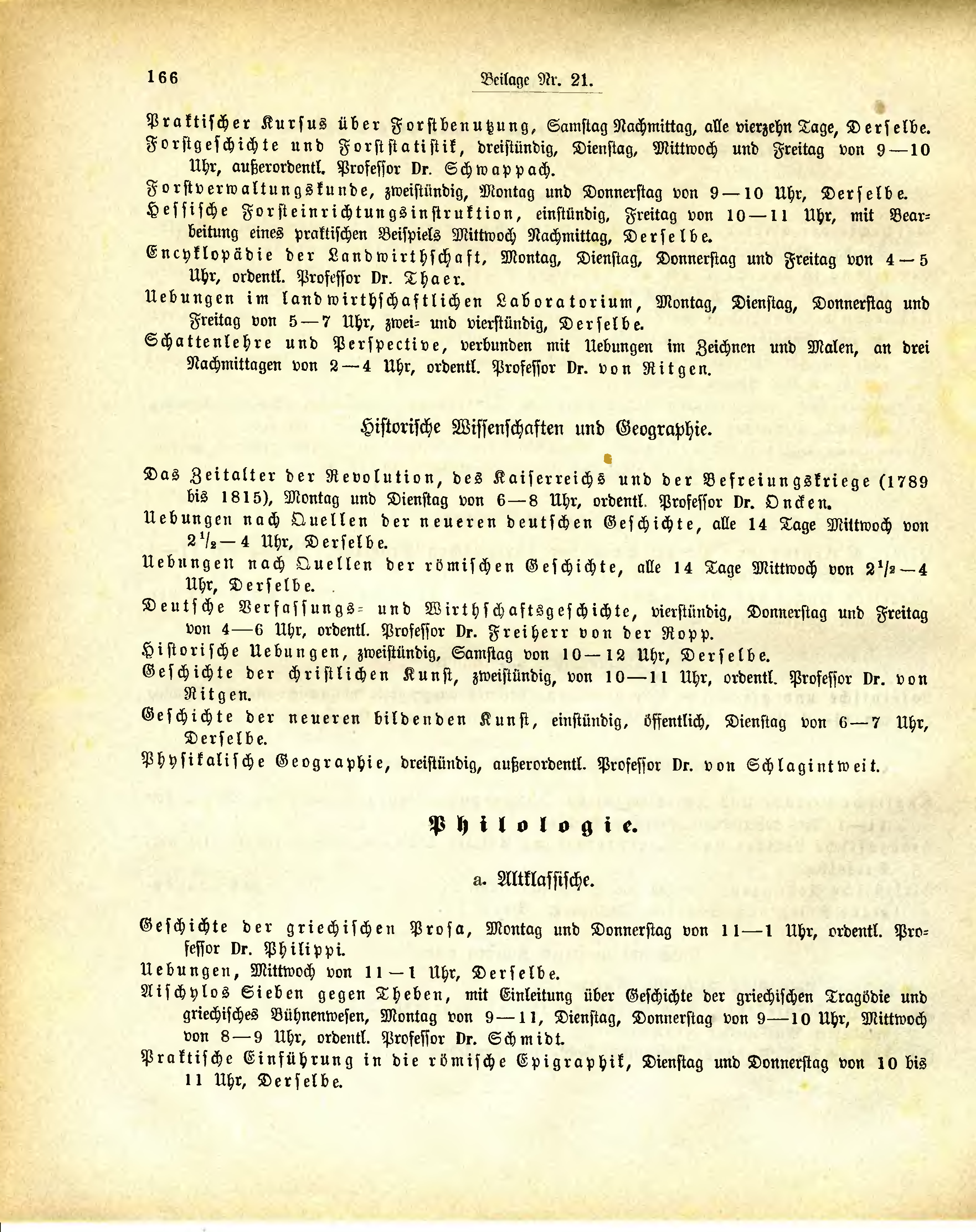 bis 1815), Montag und Dienstag von 6-8 Uhr, ordentl. Professor Dr. Oncken.