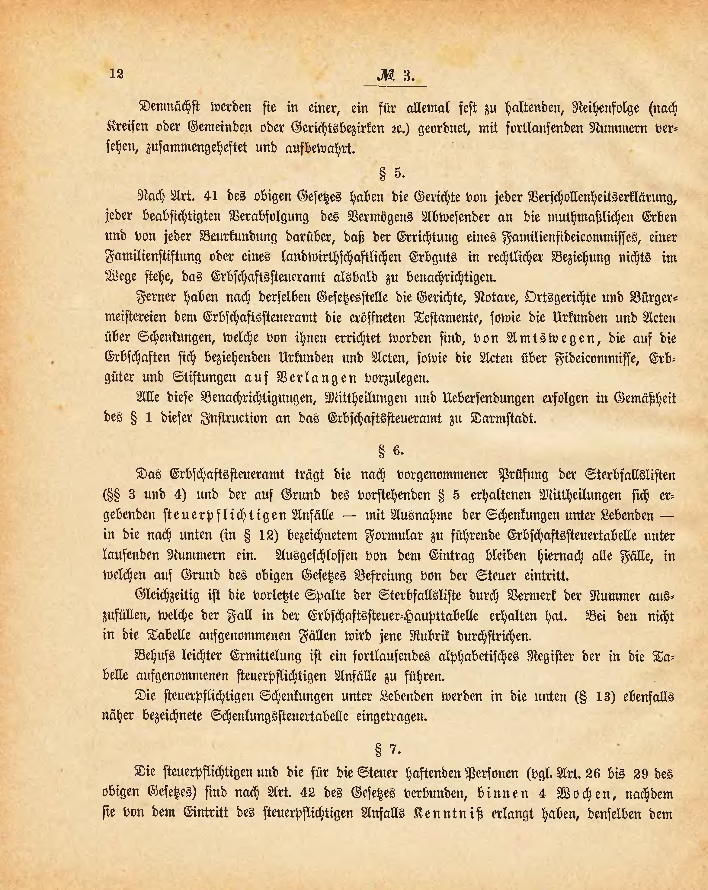Alle diese Benachrichtigungen, Mittheilungen und Uebersendungen erfolgen in Gemäßheit des § 1 dieser Instruction an das Erbschaftssteueramt zu Darmstadt.