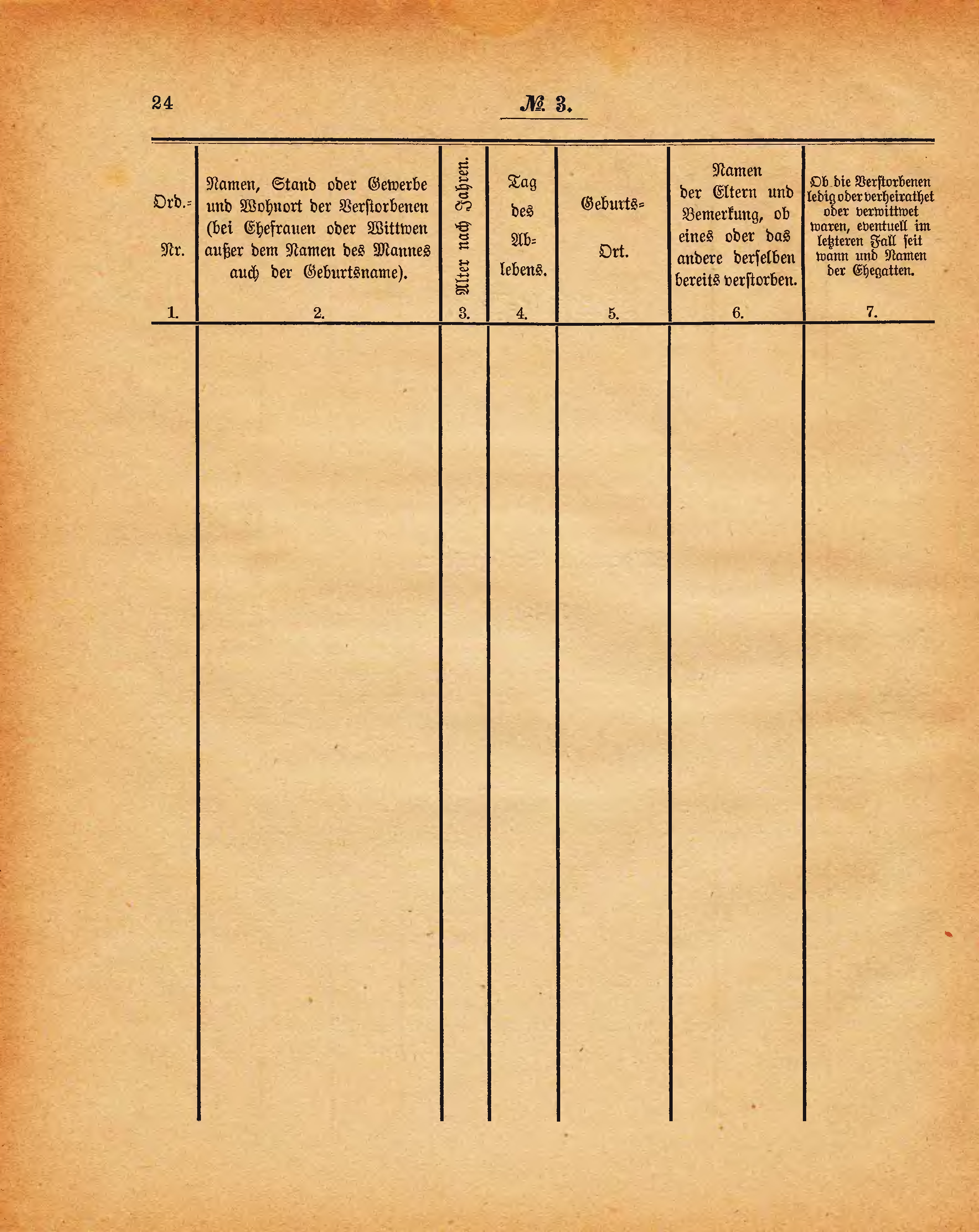 und Wohnort der Verstorbenen (bei Ehefrauen oder Wittwen außer dem Namen des Mannes auch der Geburtsname). |