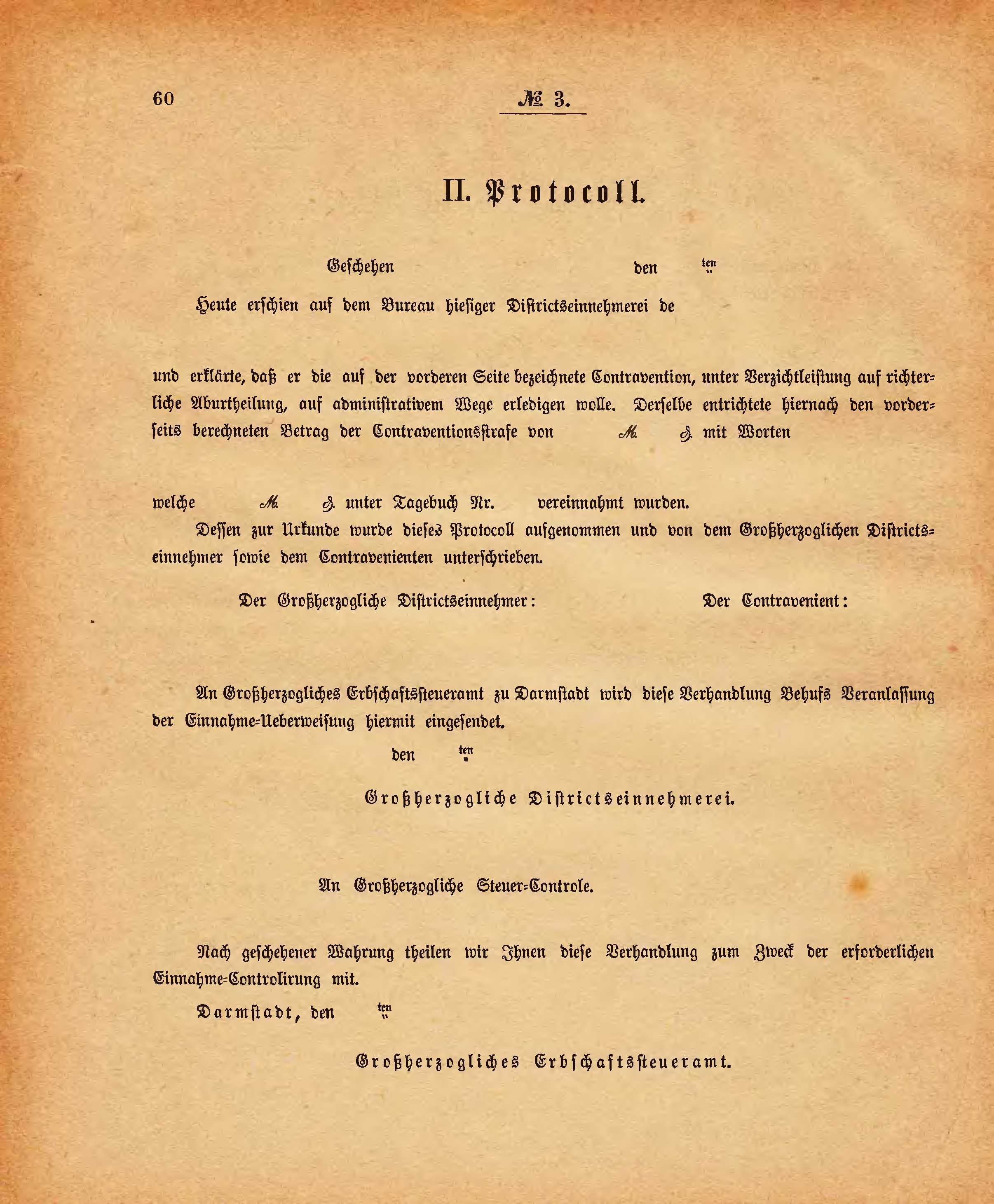 Dessen zur Urkunde wurde dieses Protocoll aufgenommen und von dem Großherzoglichen Districtseinnehmer sowie dem Contravenienten unterschrieben.