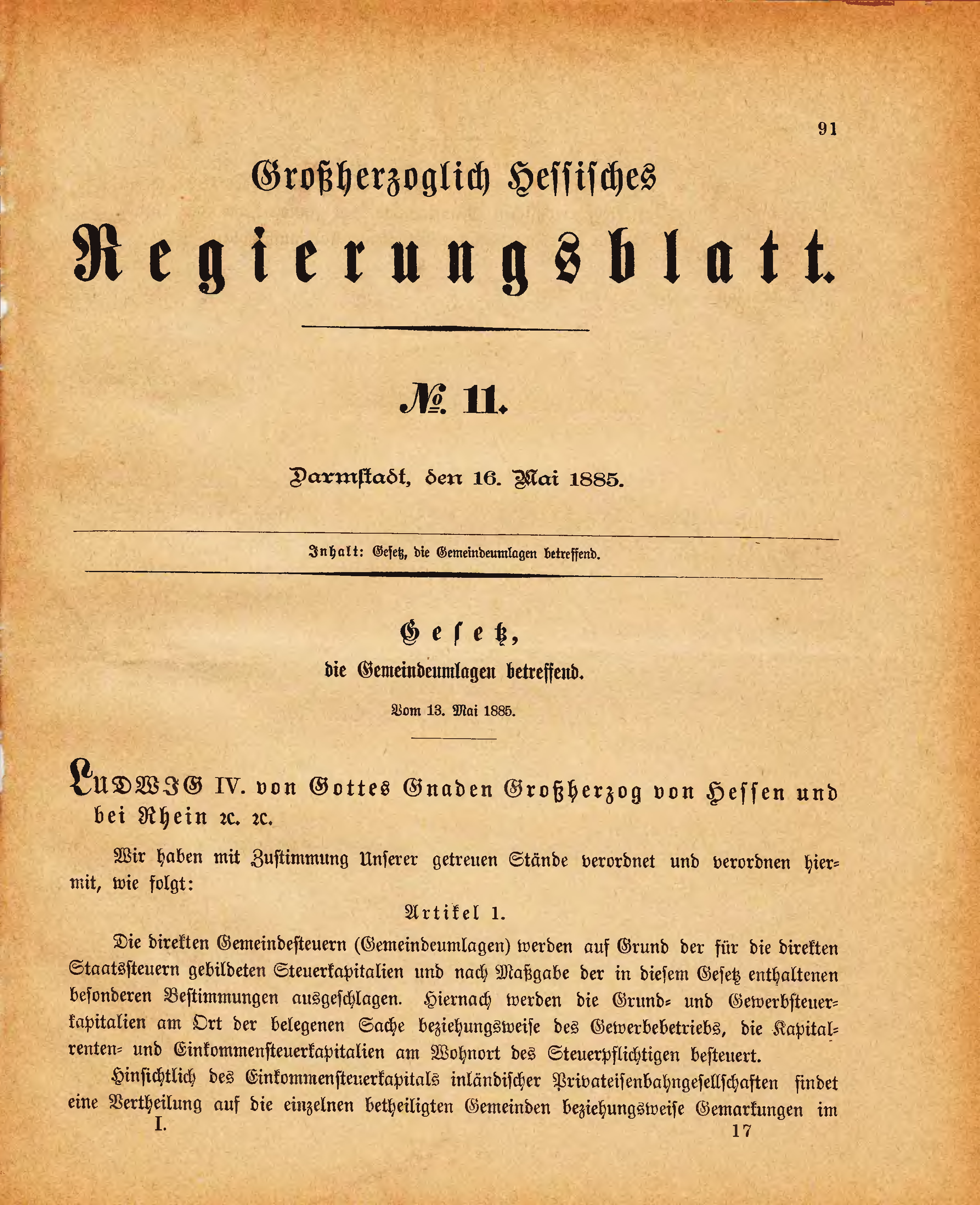 | Großherzogtum Hessen/Regierungsblatt 1885 | |
