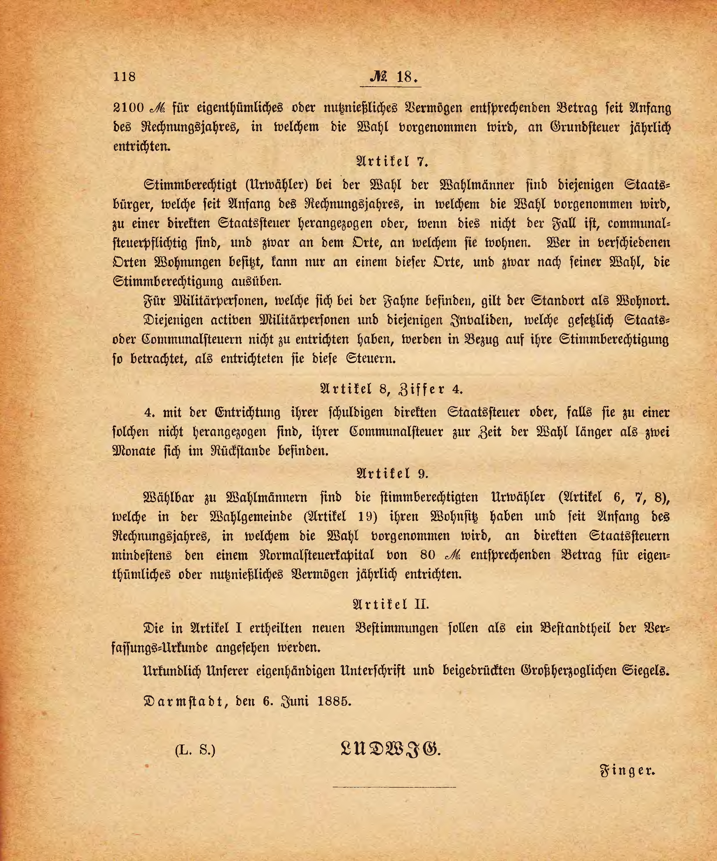 Großherzogtum Hessen/Regierungsblatt 1885/118