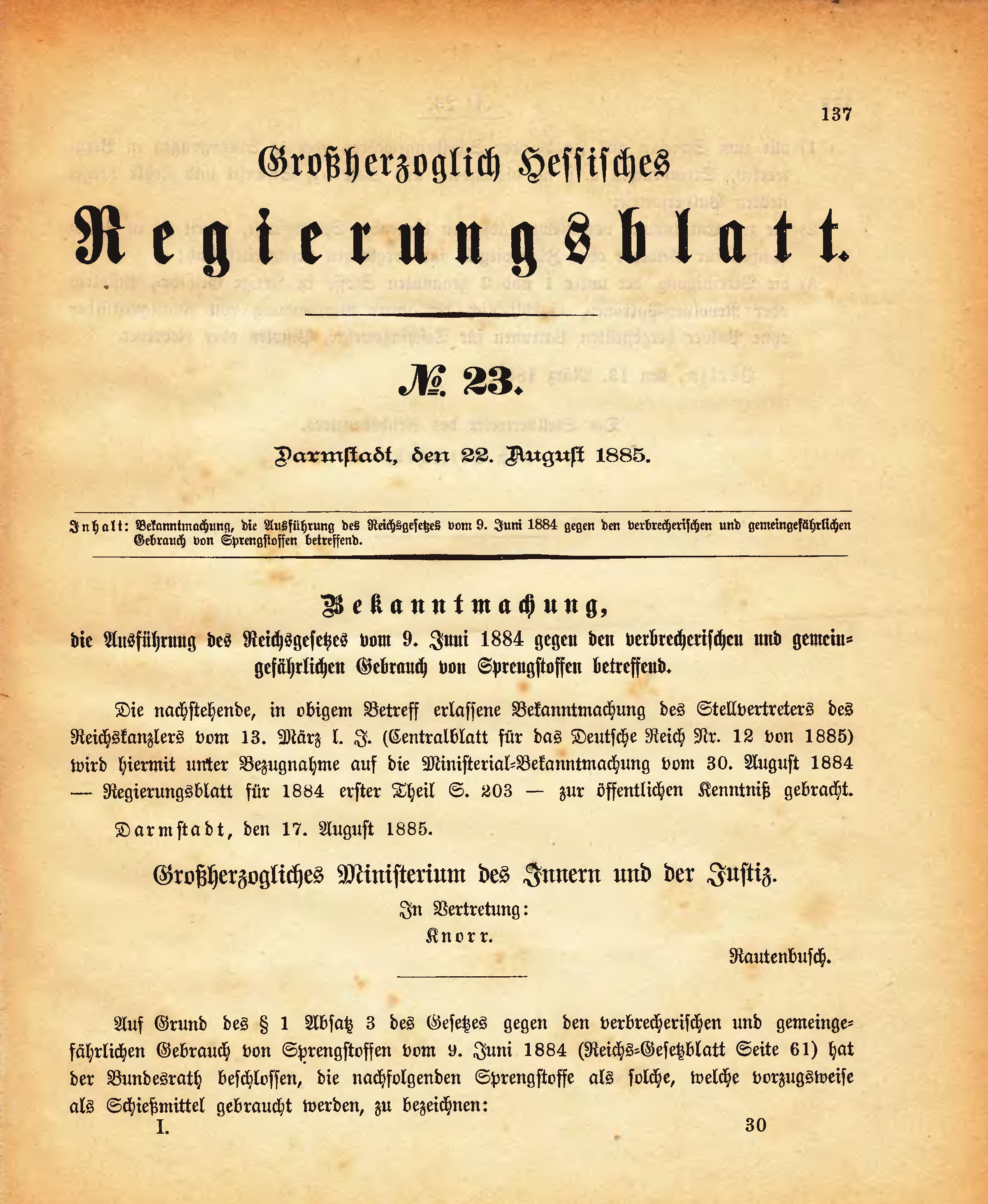 Großherzogtum Hessen/Regierungsblatt 1885/137