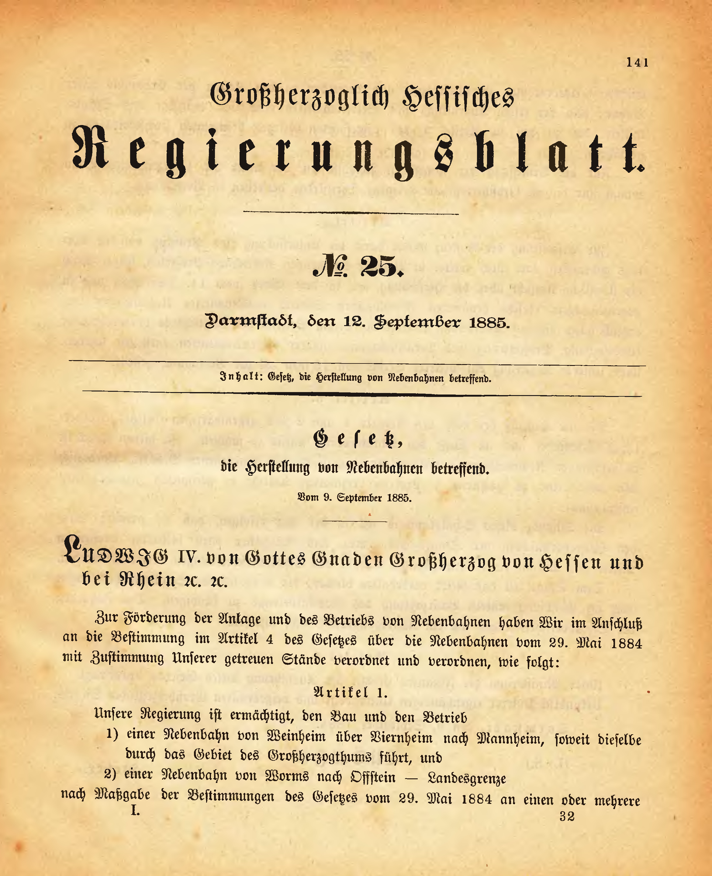 Großherzogtum Hessen/Regierungsblatt 1885/141