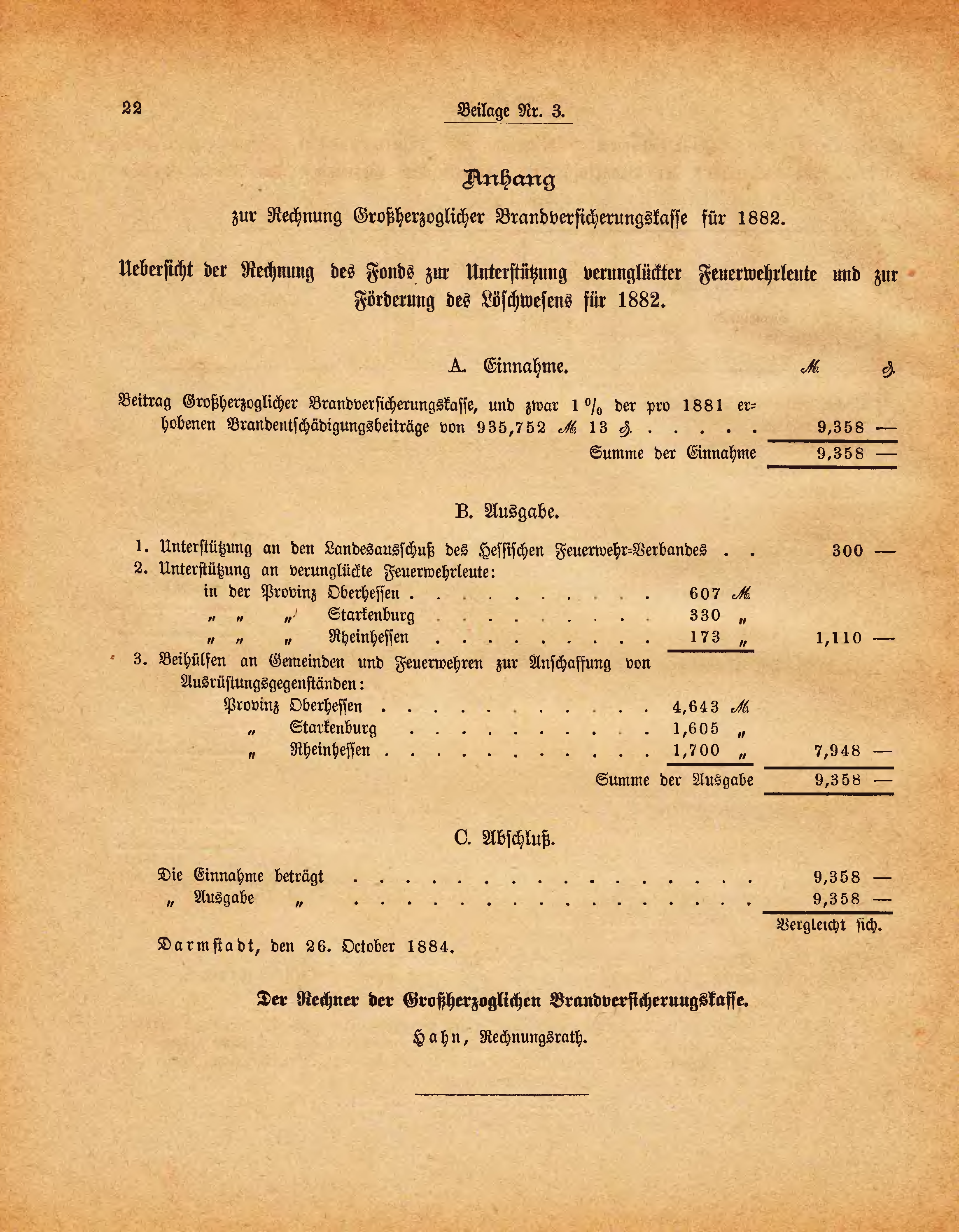Der Rechner der Großherzoglichen Brandversicherungskasse.