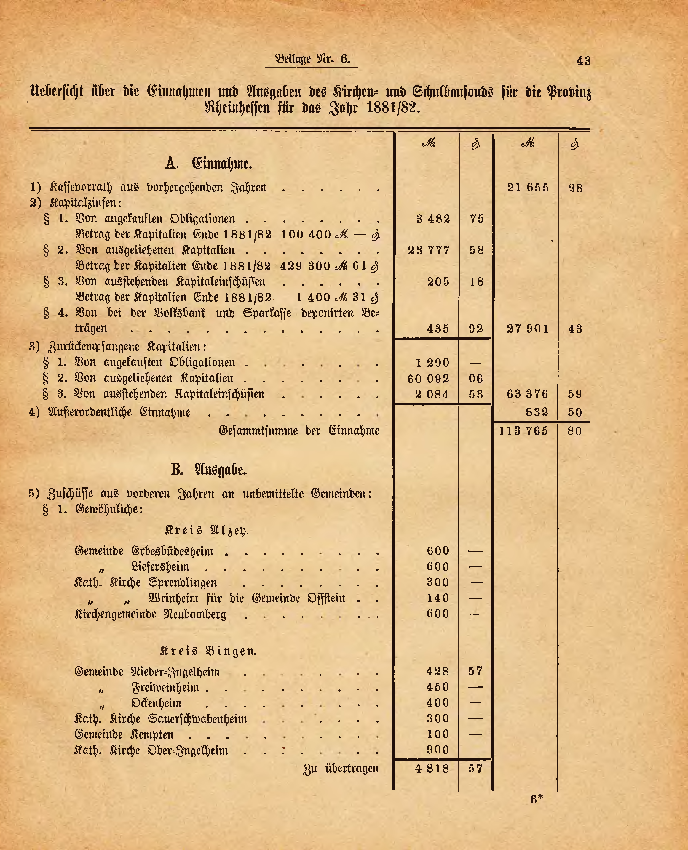 | Betrag der Kapitalien Ende 1881/82 | 429 300 | 61 | |||||||||||