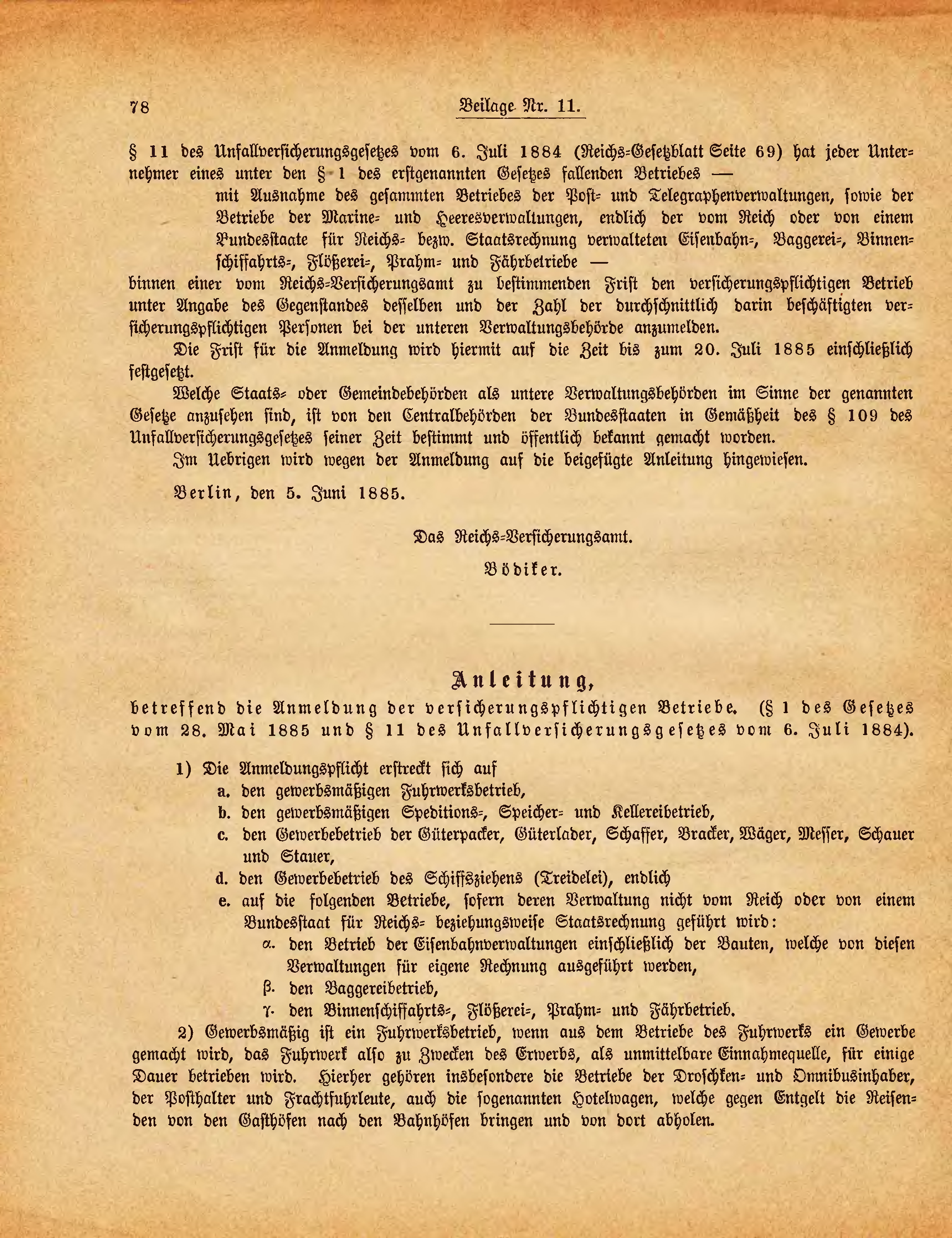 § 11 des Unfallversicherungsgesetzes vom 6. Juli 1884 (Reichs-Gesetzblatt Seite 69) hat jeder Unternehmer eines unter den § 1 des erstgenannten Gesetzes fallenden Betriebes -