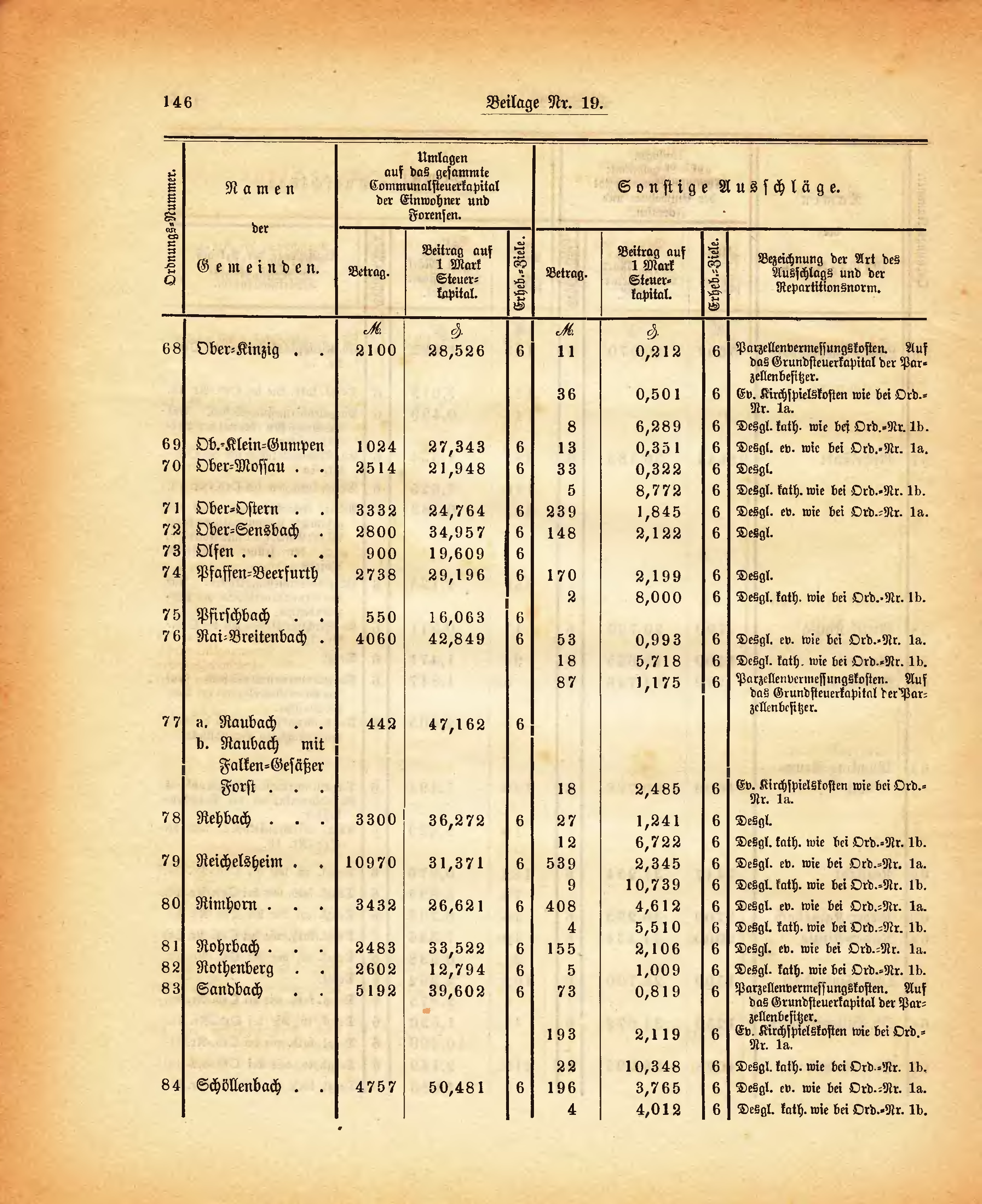 Umlagen auf das gesammte Communalsteuerkapital der Einwohner und Forensen. |