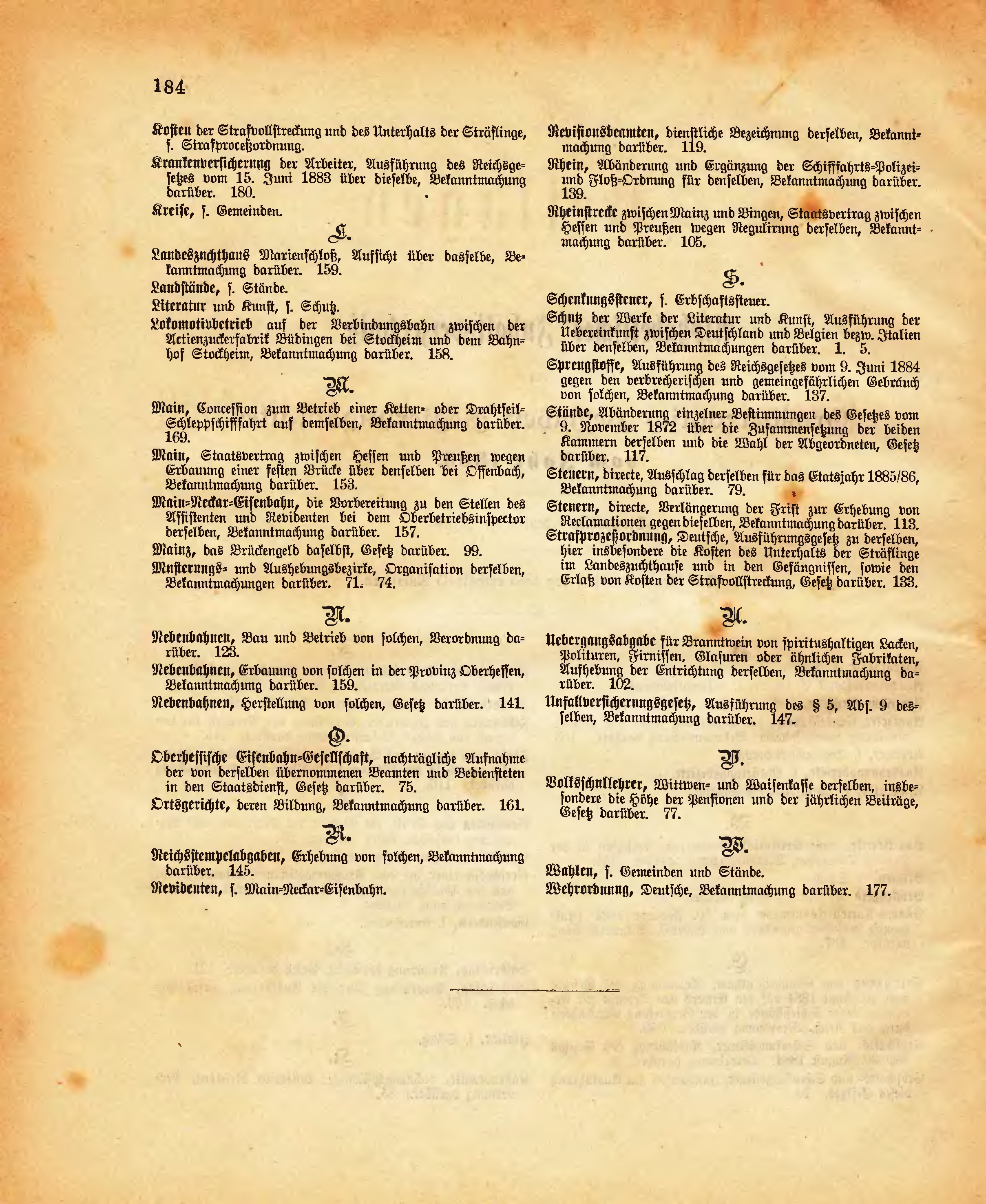 Großherzogtum Hessen/Regierungsblatt 1885/InhaltRegBl2