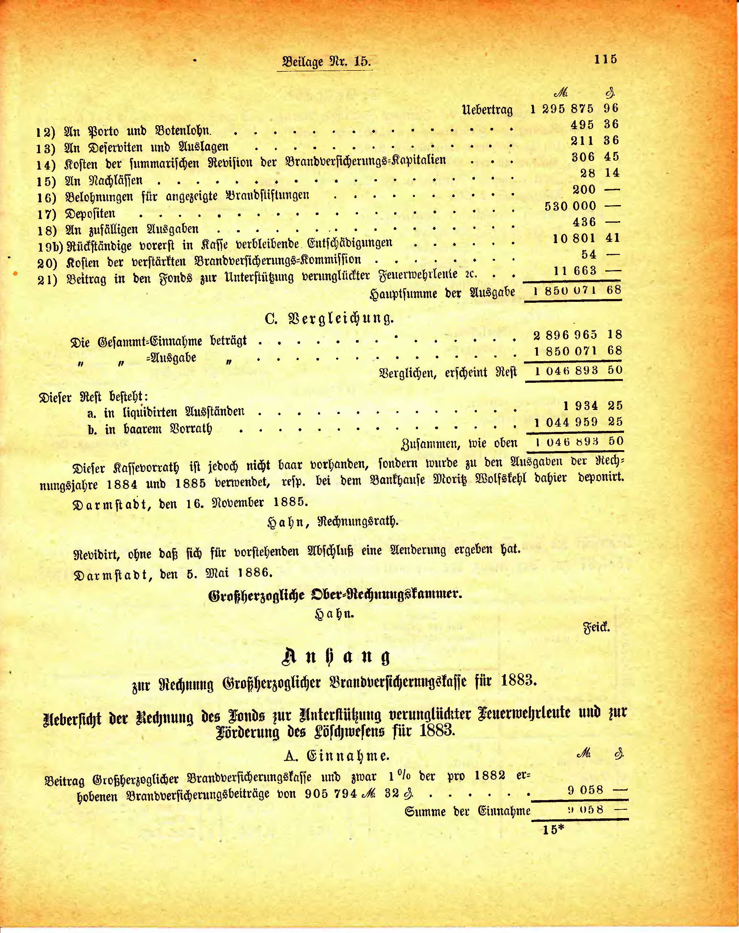 zur Rechnung Großherzoglicher Brandversicherungskasse für 1883.