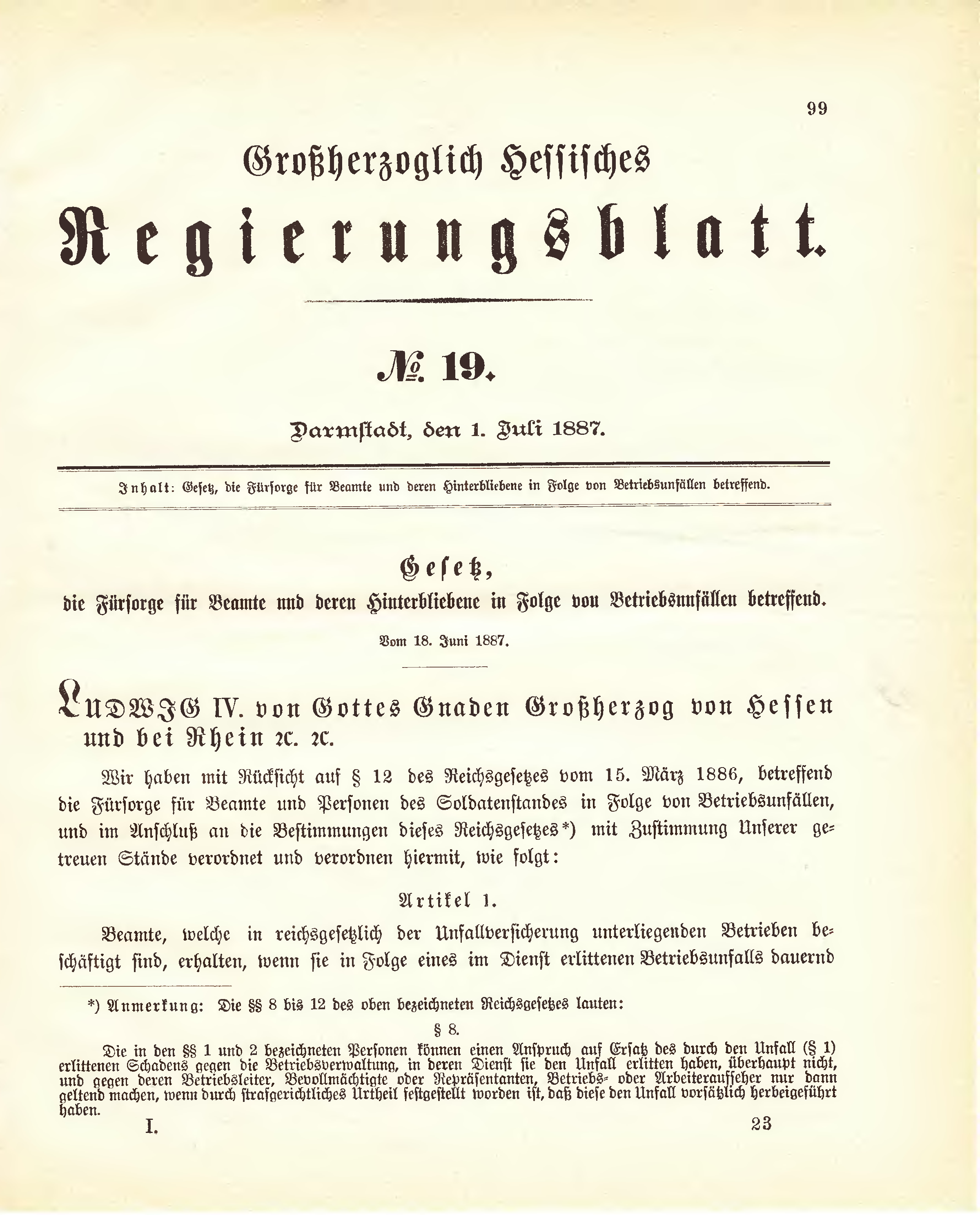 | Inhalt: | Gesetz, die Fürsorge für Beamte und deren Hinterbliebene in Folge von Betriebsunfällen betreffend. |