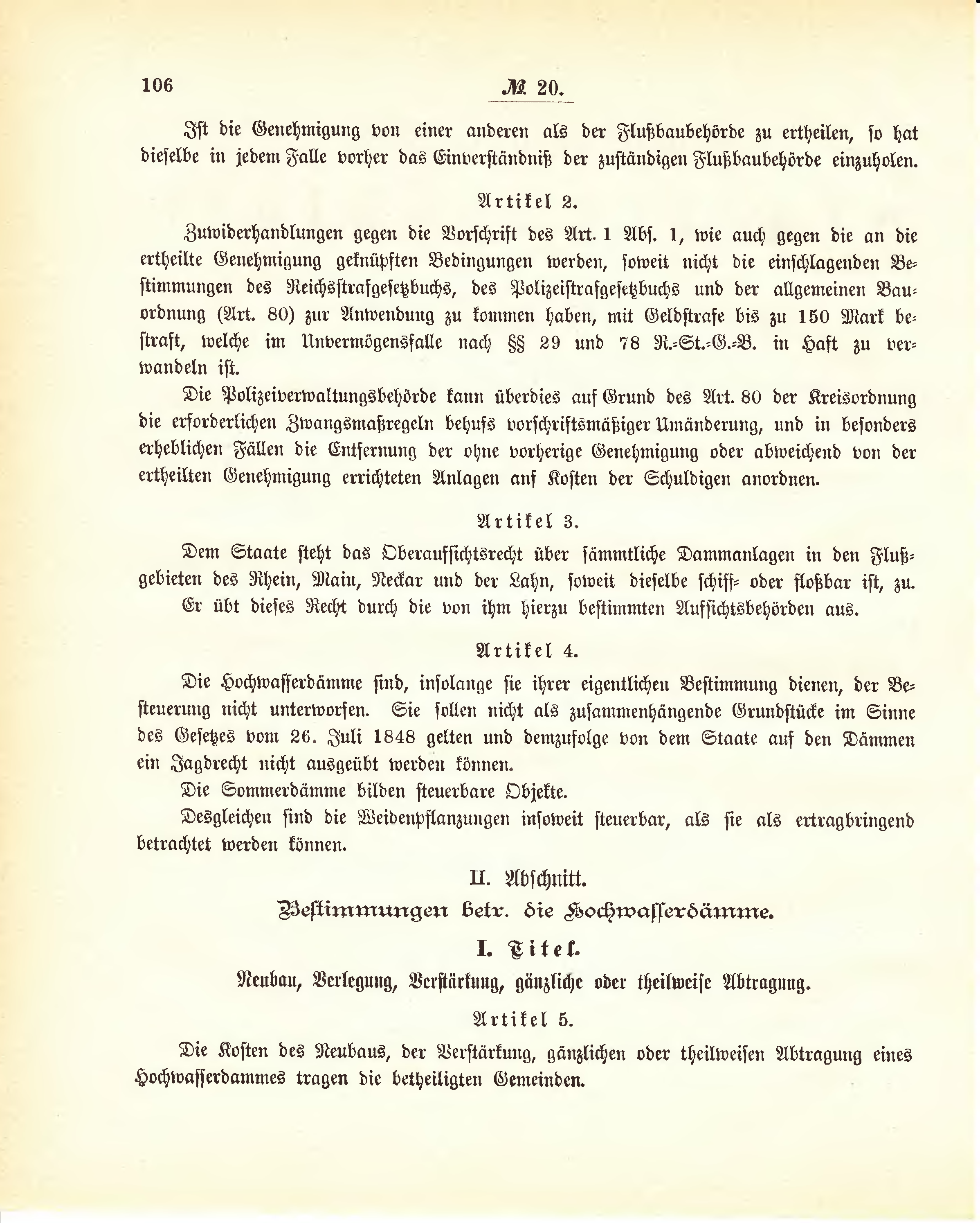 Bestimmungen betr. die Hochwasserdämme.
