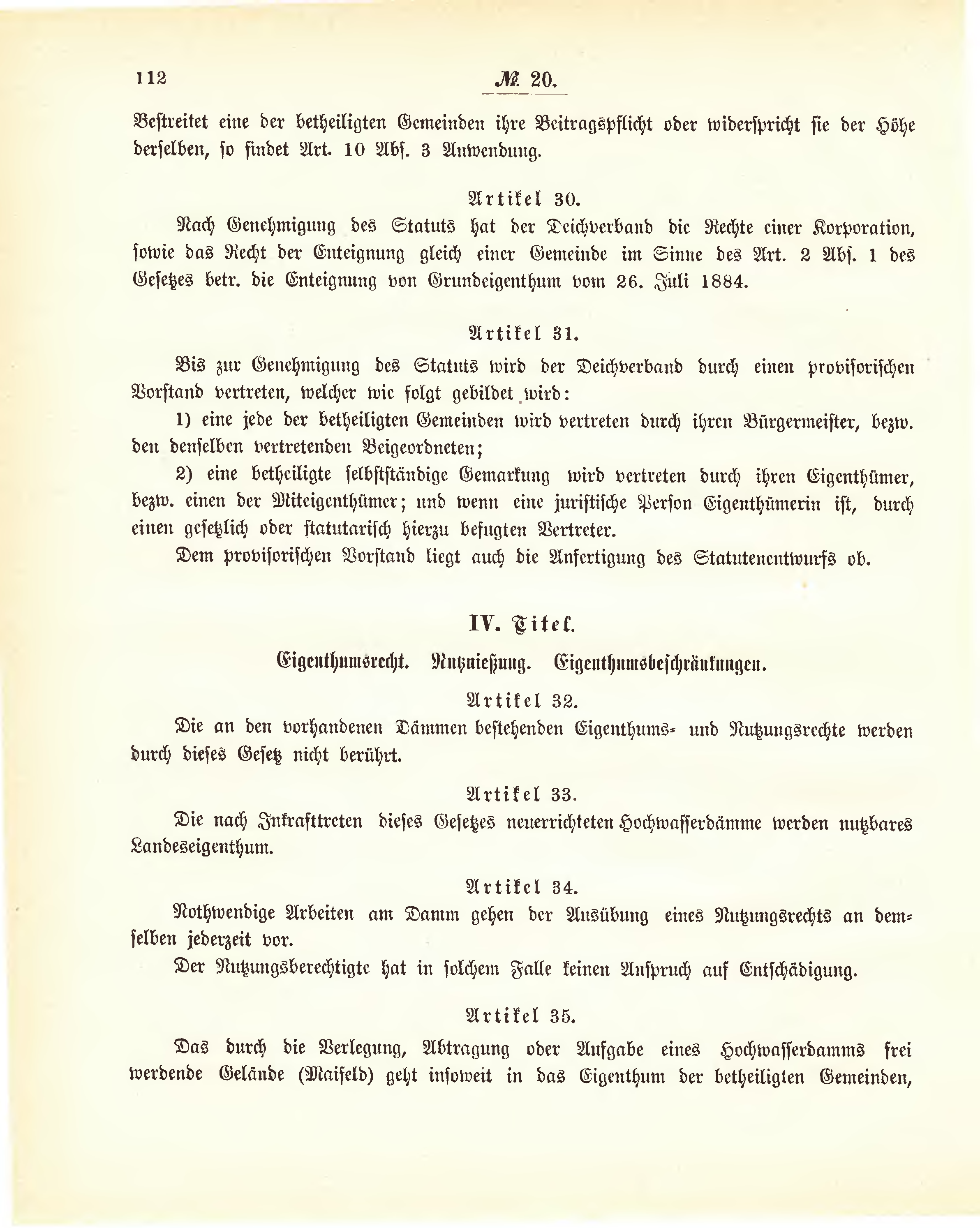 Nach Genehmigung des Statuts hat der Deichverband die Rechte einer Korporation, sowie das Recht der Enteignung gleich einer Gemeinde im Sinne des Art. 2 Abs. 1 des Gesetzes betr. Die Enteignung von Grundeigenthum vom 26. Juli 1884.
