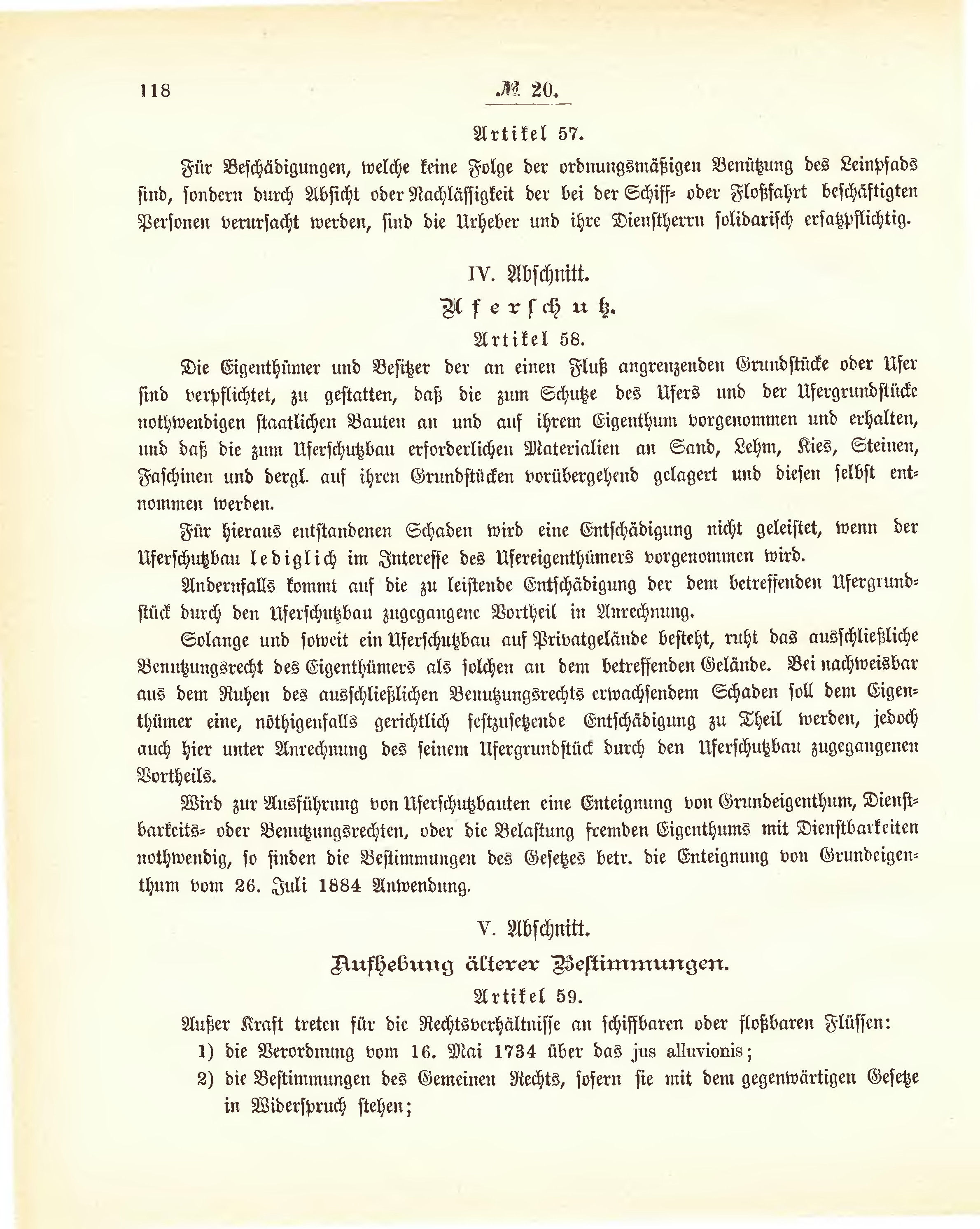| 1) | die Verordnung dem 16. Mai 1734 über das jus alluvionis; | |