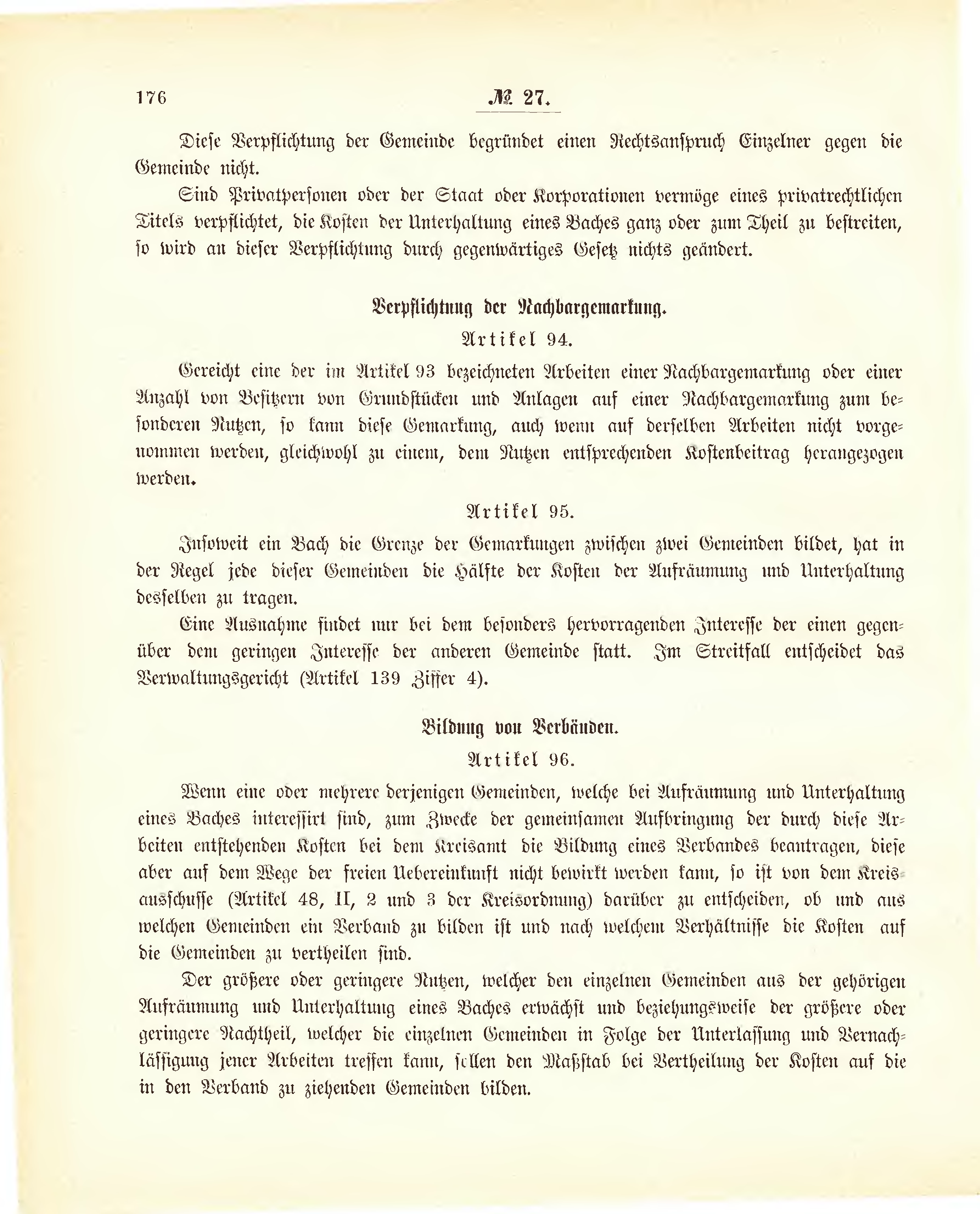 Insoweit ein Bach die Grenze der Gemarkungen zwischen zwei Gemeinden bildet, hat in der Regel jede dieser Gemeinden die Hälfte der Kosten der Aufräumung und Unterhaltung desselben zu tragen.