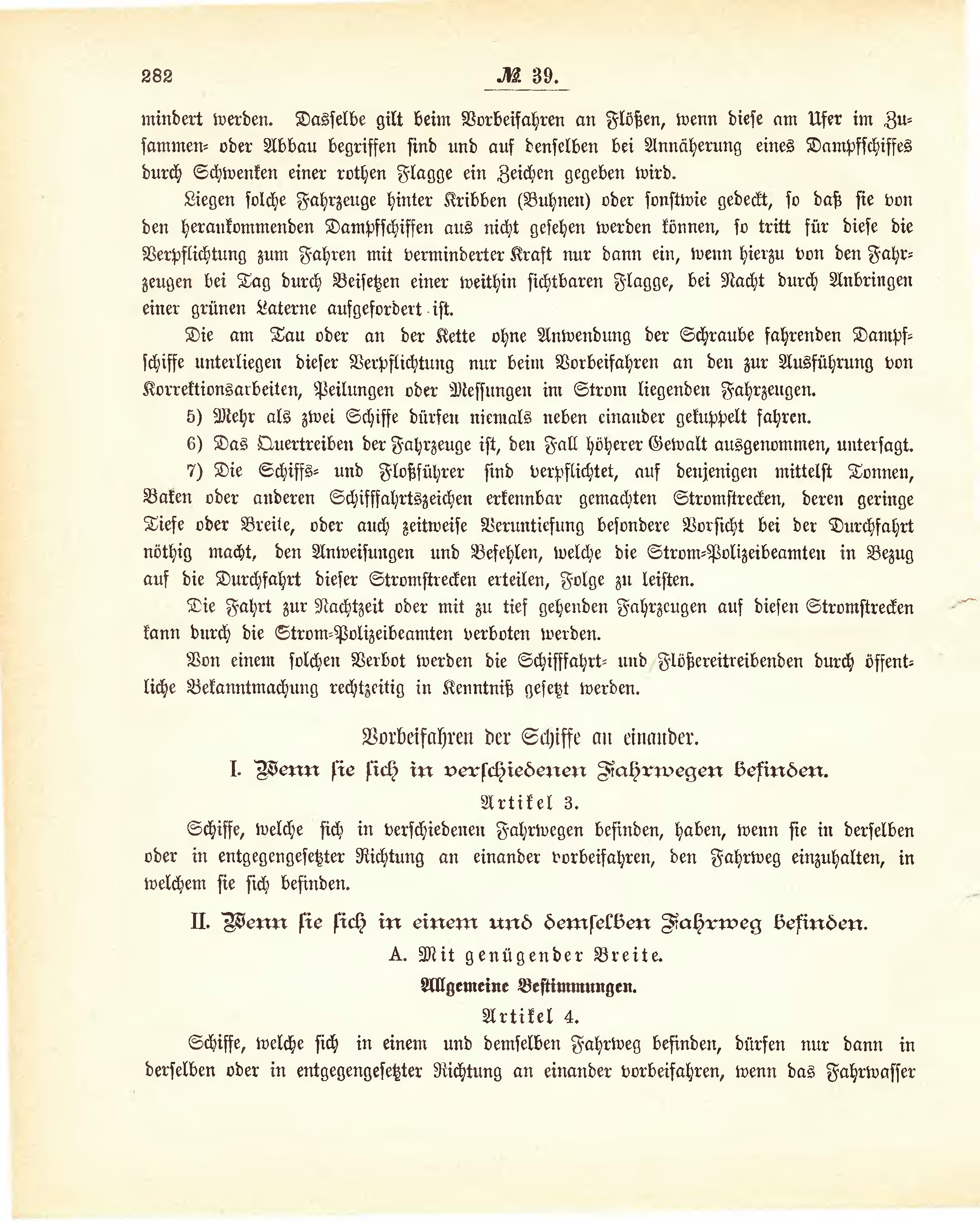 Schiffe, welche sich in einem und demselben Fahrweg befinden, dürfen nur dann in derselben oder in entgegengesetzter Richtung an einander vorbeifahren, wenn das Fahrwasser