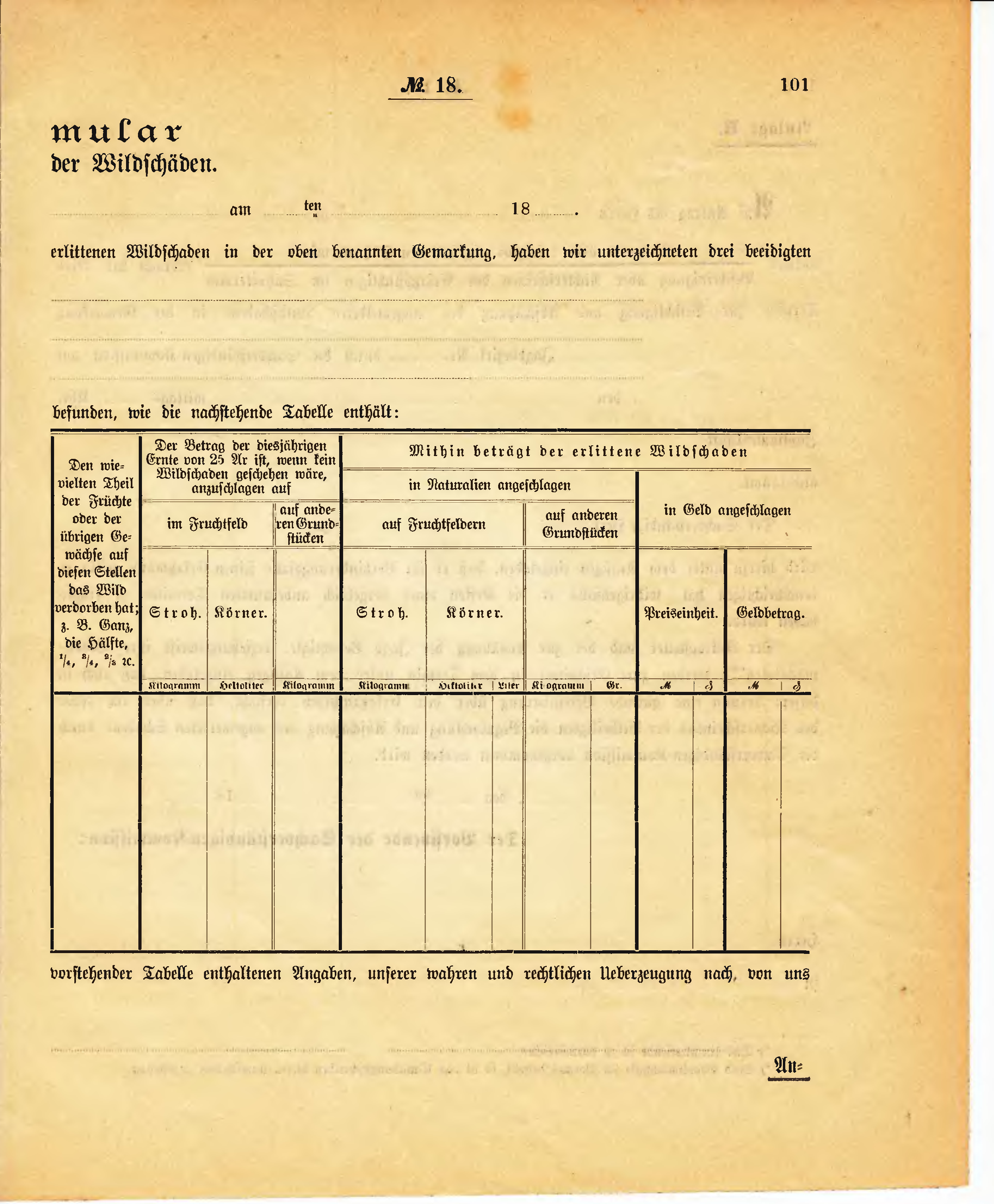 alle Felder, die uns als solche, wo Wildschaden geschehen sei, angegeben worden, genau besichtigt und befunden, wie die nachstehende Tabelle enthält: