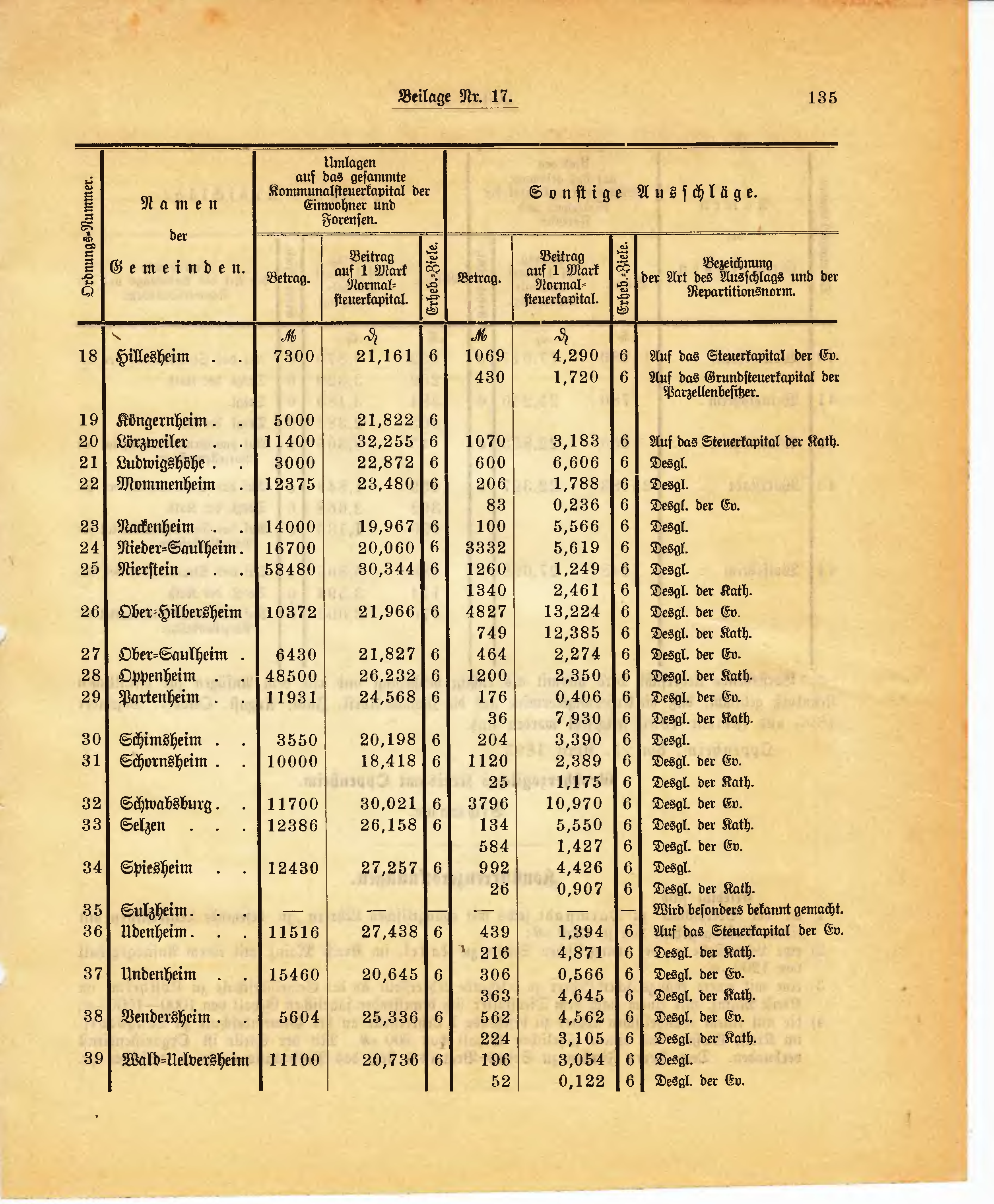 38 Vendersheim 5604 25,336 6 562 4,562 6 Desgl. der Ev.