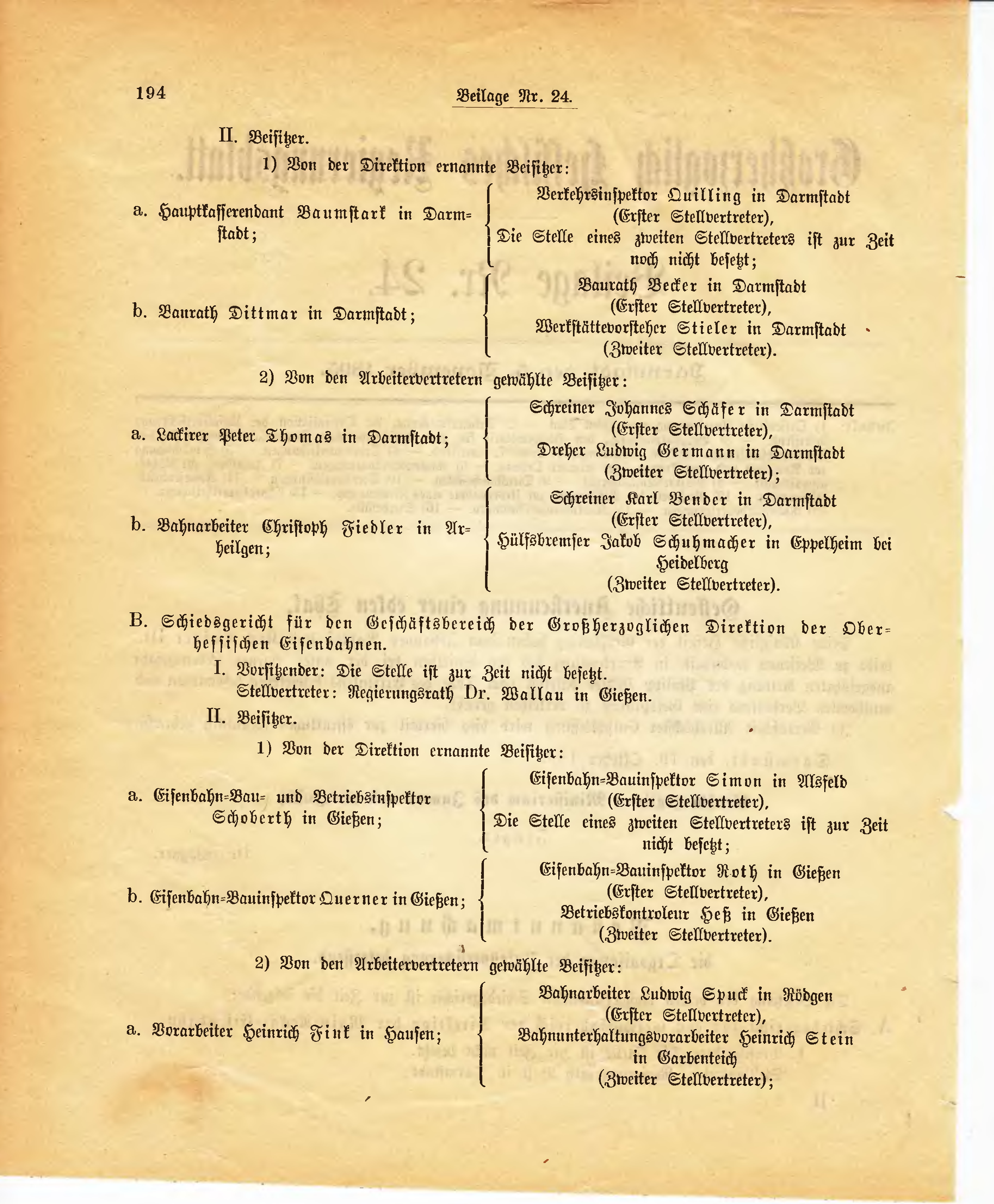 | a. Lackirer Peter Thomas in Darmstadt; | (Erster Stellvertreter), Dreher Ludwig Germann in Darmstadt (Zweiter Stellvertreter); | |