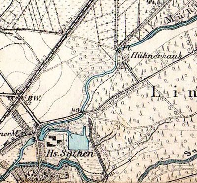- 20.06.1846, Haus Nr. 79: Kötter Alexander Alexander Hönerhues , Eigentümer des in der Bsch. Stockwiese gelegenen Hönerhues Kotten reklamierte sein vollständiges Miteigentum an der ganzen Sythenschen Mark, und Ausübung desselben durch Weide mit allen Viehgattungen, auch Schafen, Plaggenmahd auf Heidegründen, Torfstich, Holzteilnahme an den vorhandenen Holzgründen.