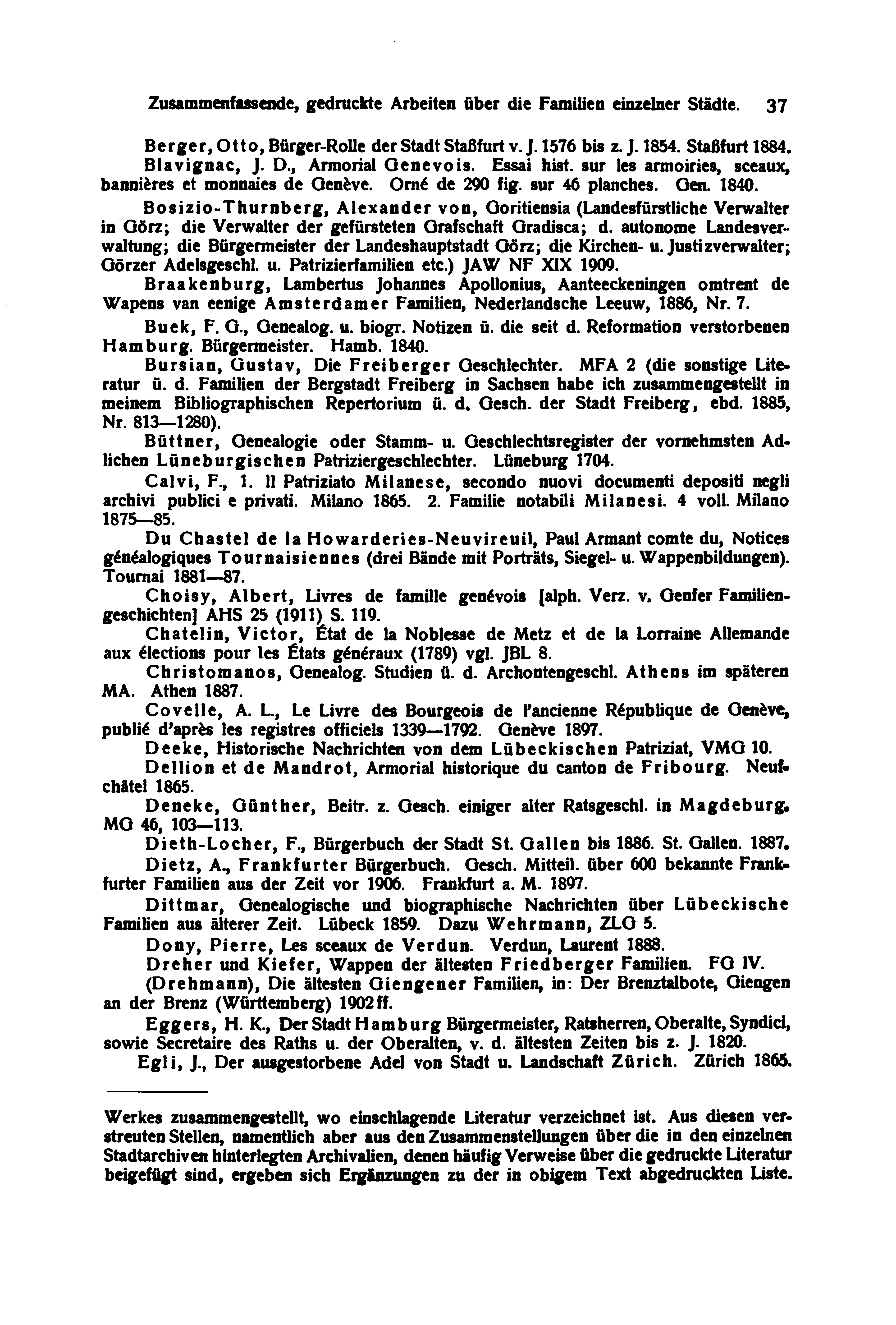 Bursian, Gustav, Die Freiberger Geschlechter. MFA 2 (die sonstige Literatur ü. d. Familien der Bergstadt Freiberg in Sachsen habe ich zusammengestellt in meinem Bibliographischen Repertorium ü. der Gesch. der Stadt Freiberg, ebd. 1885, Nr. 813—1280).