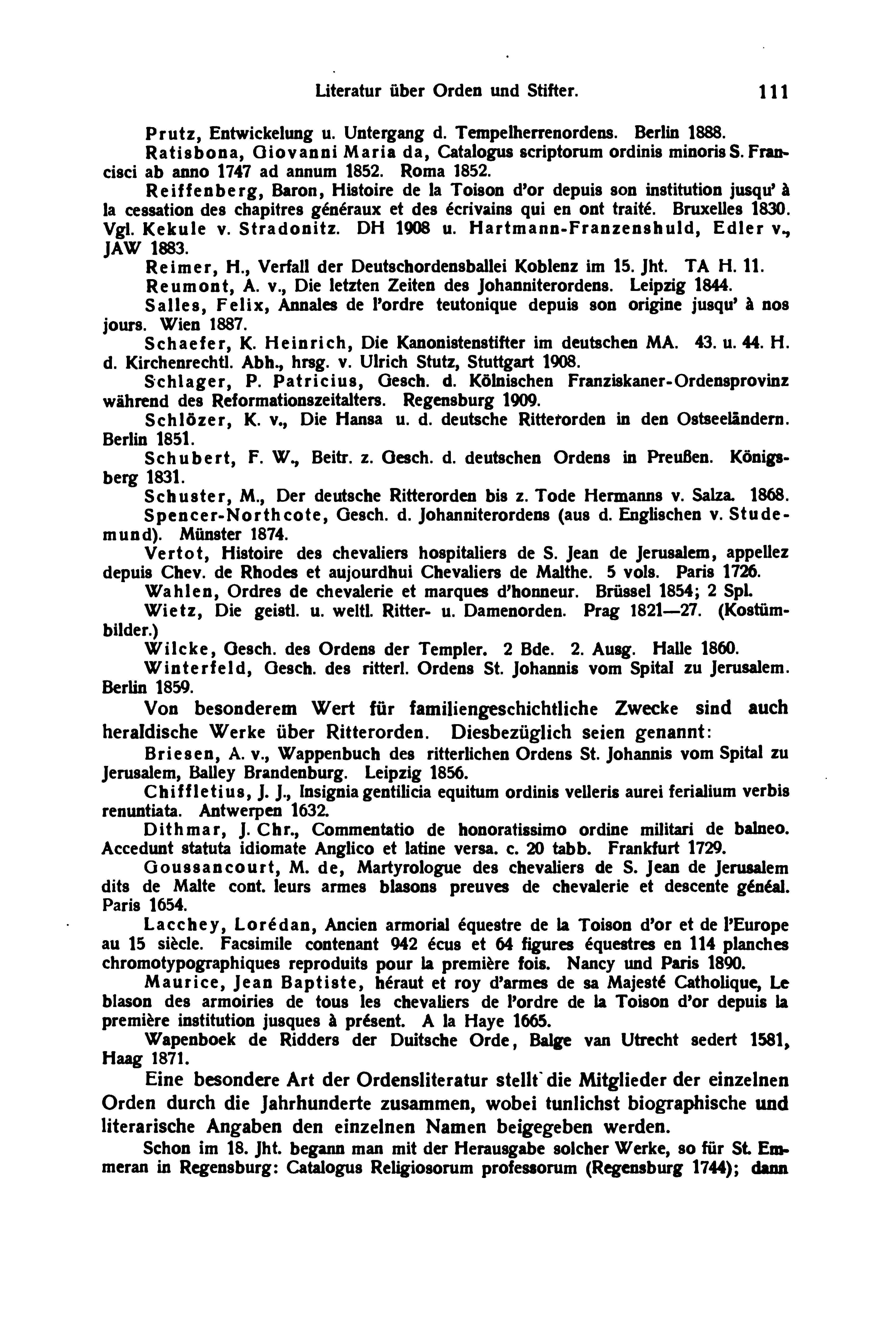 Eine besondere Art der Ordensliteratur stellt die Mitglieder der einzelnen Orden durch die Jahrhunderte zusammen, wobei tunlichst biographische und literarische Angaben den einzelnen Namen beigegeben werden.