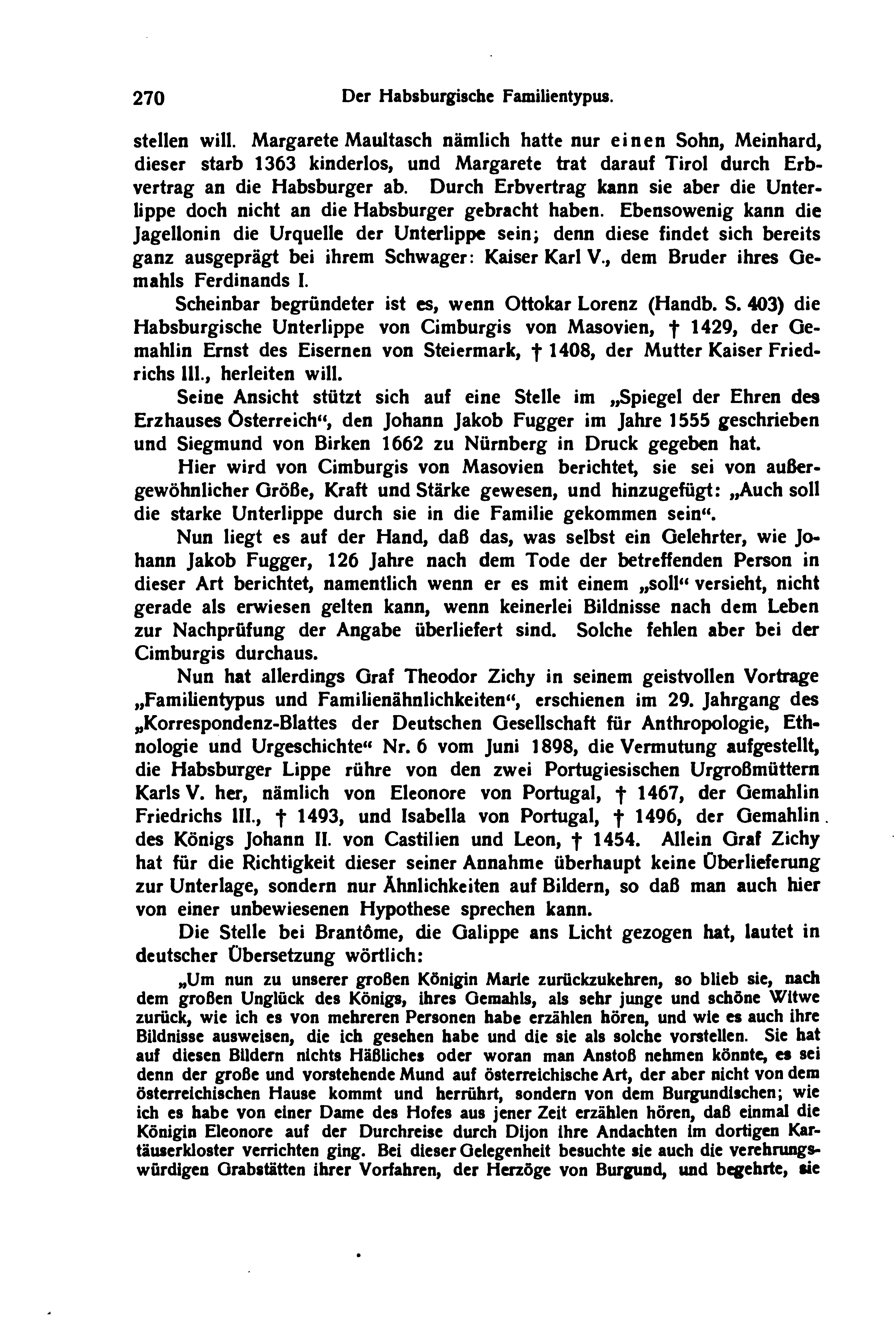 Scheinbar begründeter ist es, wenn Ottokar Lorenz (Handb. S. 403) die Habsburgische Unterlippe von Cimburgis von Masovien, † 1429, der Gemahlin Ernst des Eisernen von Steiermark, † 1408, der Mutter Kaiser Friedrichs III., herleiten will.