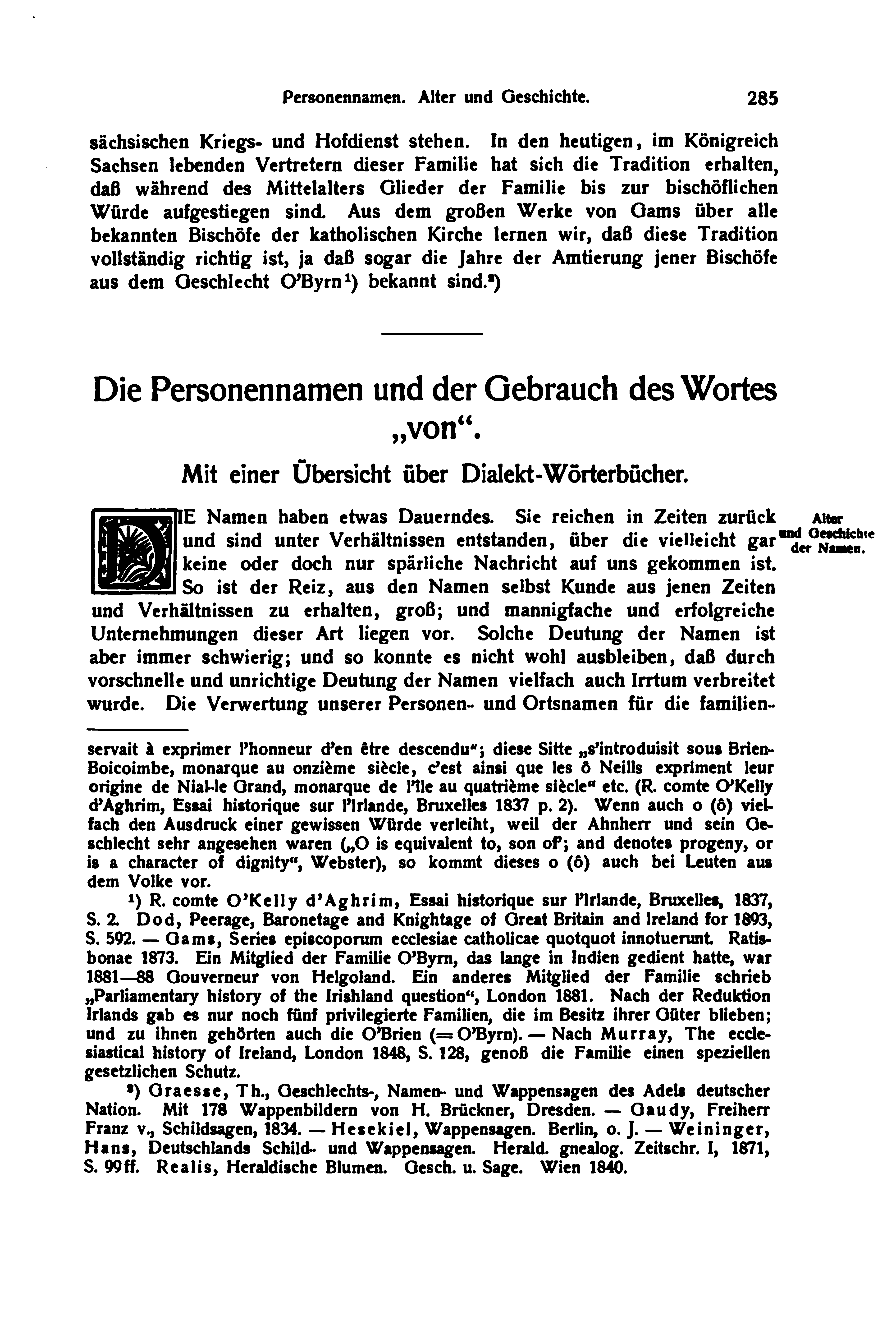 Die Personennamen und der Gebrauch des Wortes „von“.