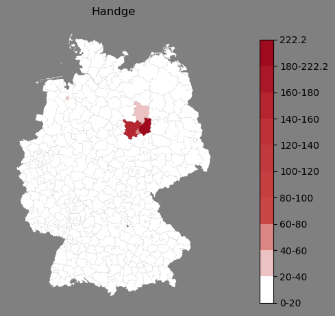 Absolute Verteilung des Namens Handge (1890)Direkt zur Karte Absolute Verteilung des Namens "Handge" um 1890 im damaligen Deutschen Reich Sie können die Karte innerhalb des Fensters zoomen und verschieben. |