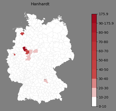 Absolute Verteilung des Namens Hanhardt (1890)Direkt zur Karte Absolute Verteilung des Namens "Hanhardt" um 1890 im damaligen Deutschen Reich Sie können die Karte innerhalb des Fensters zoomen und verschieben. |