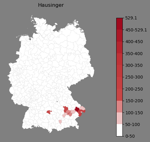 Absolute Verteilung des Namens Hausinger (1890)Direkt zur Karte Absolute Verteilung des Namens "Hausinger" um 1890 im damaligen Deutschen Reich Sie können die Karte innerhalb des Fensters zoomen und verschieben. |