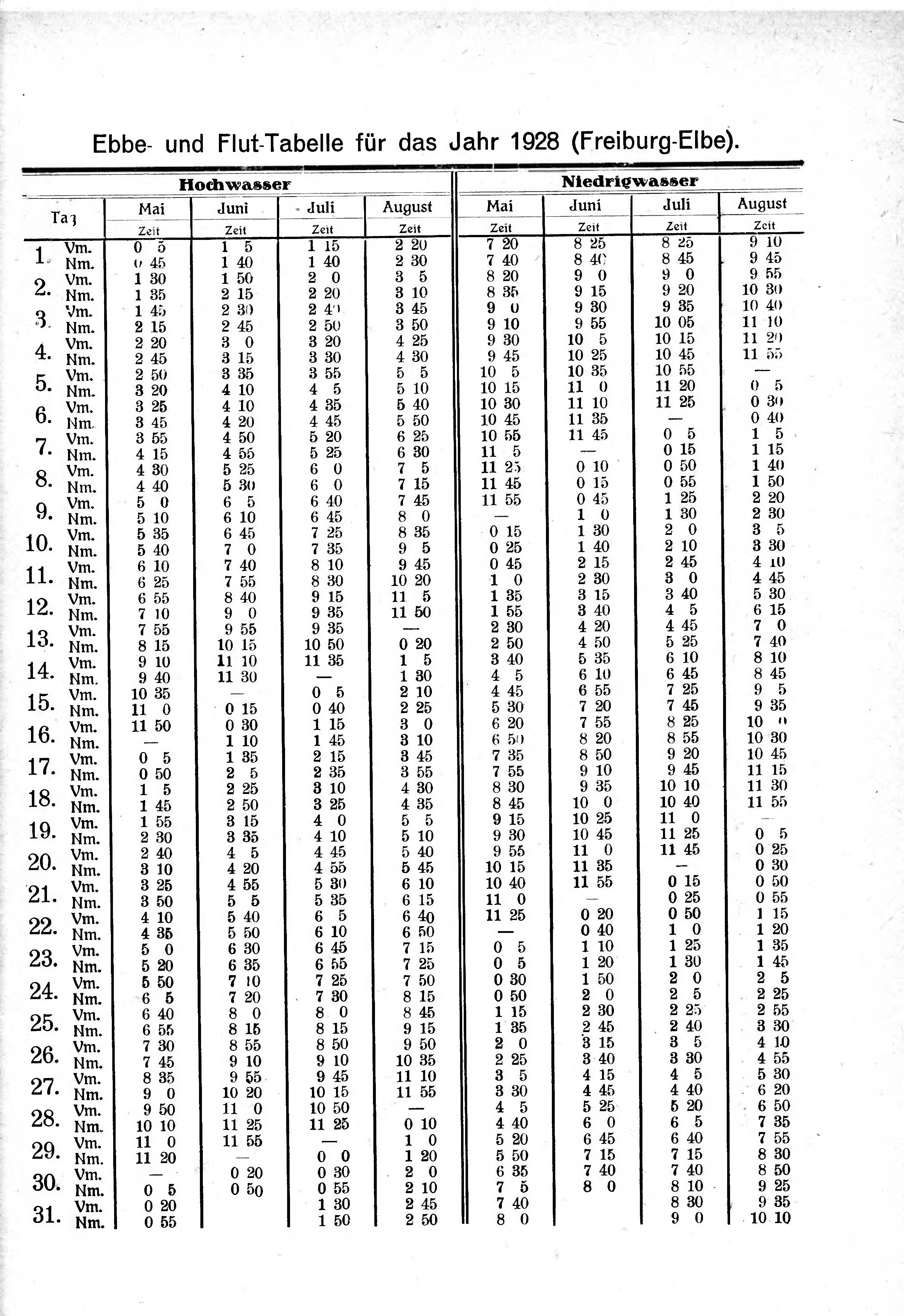 Heimat- und Einwohnerbuch Kehdingen 1926-30/Ebbe/Fluttabellen 6